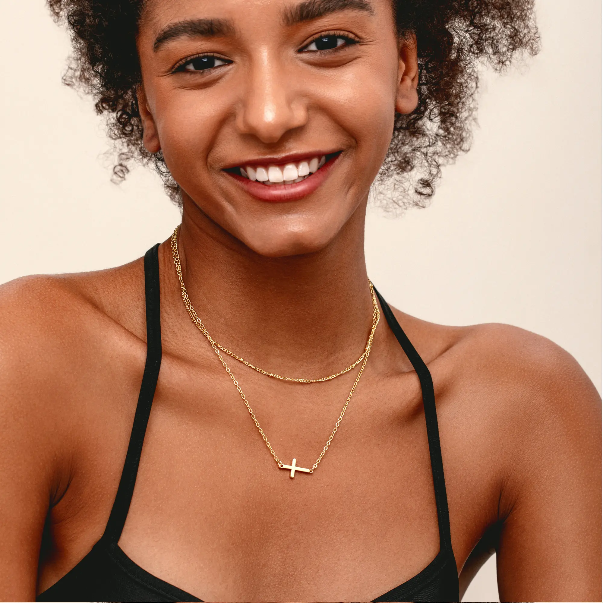 The cross symbolizes happiness and good fortune. This classic and dainty design is perfect for daily wear or special occasions. Crafted with 14K real gold plated brass, it is hypoallergenic, nickel-free, and lead-free. Tarnish-resistant and non-fading, it ensures lasting beauty.