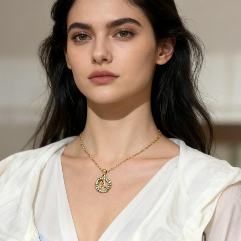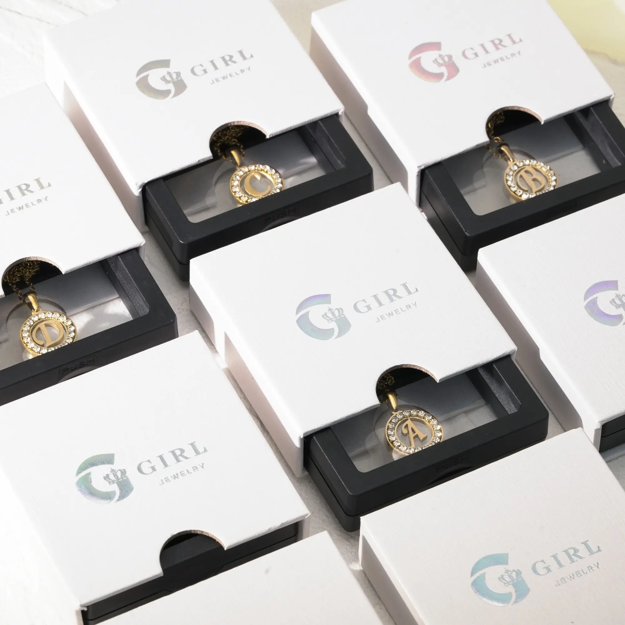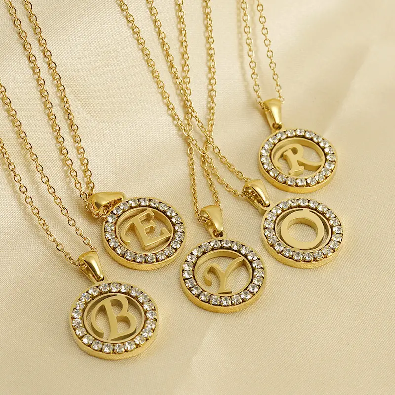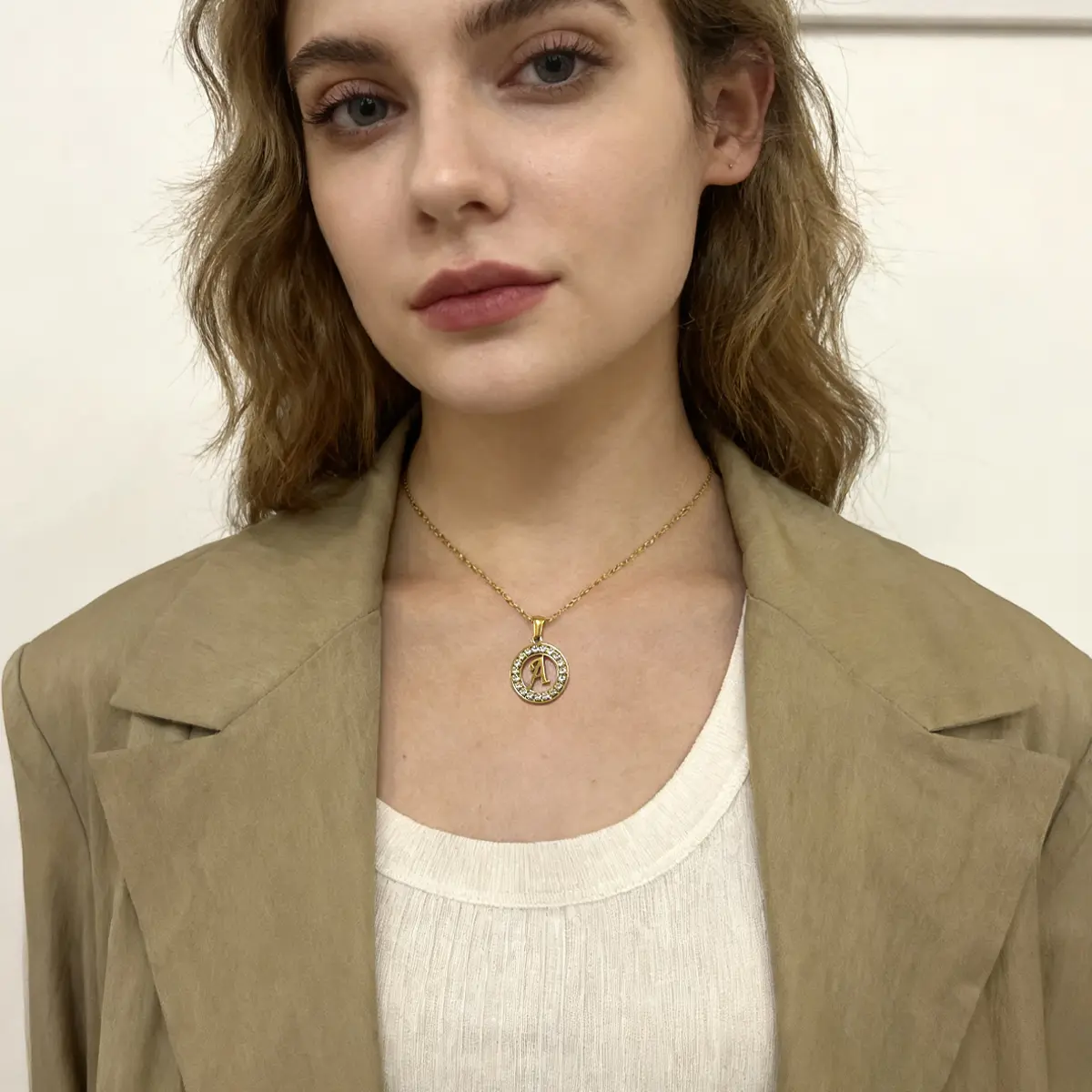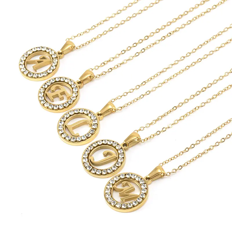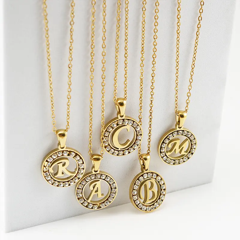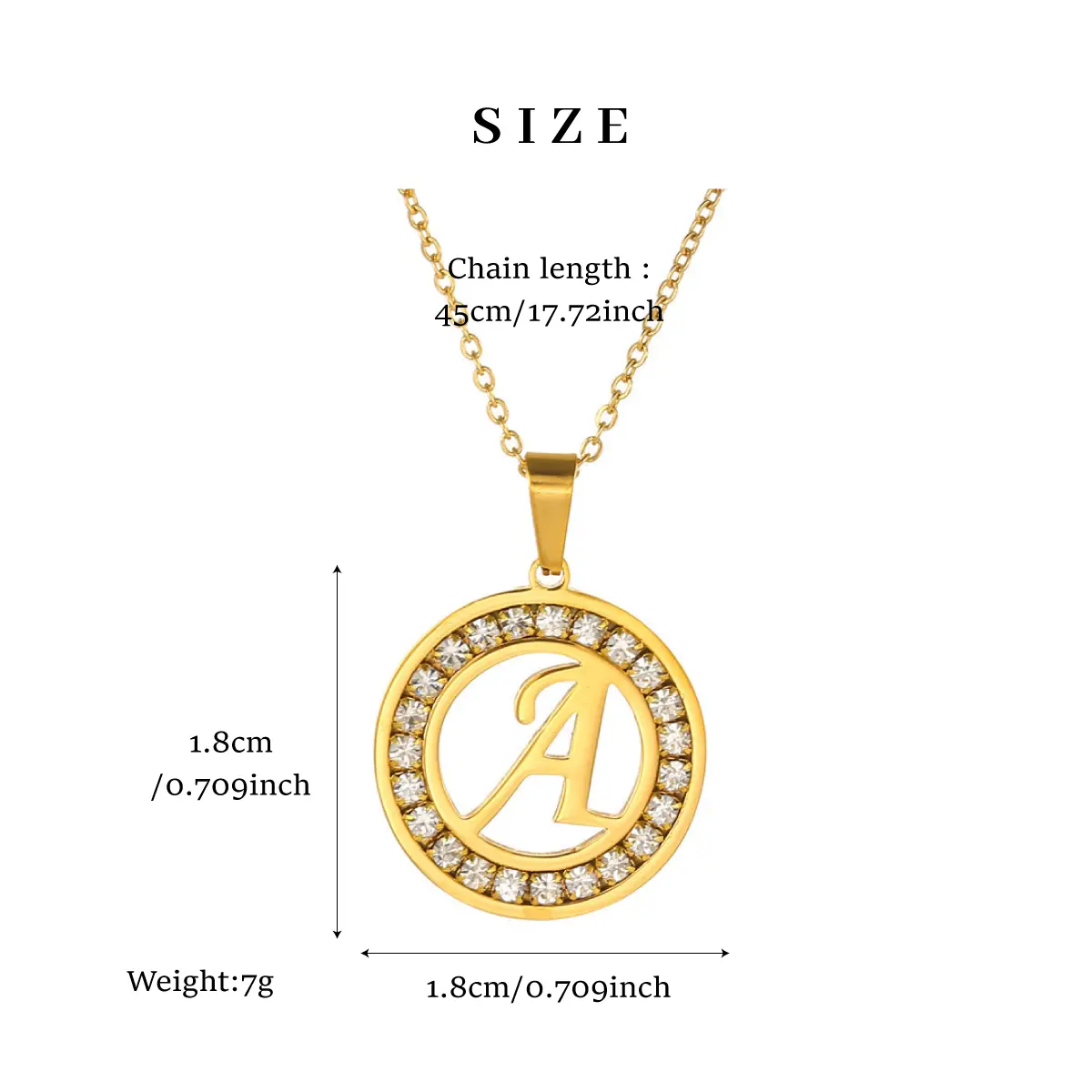 GGIRL 18K Gold Plated Round Artificial Zircon Letter Necklace