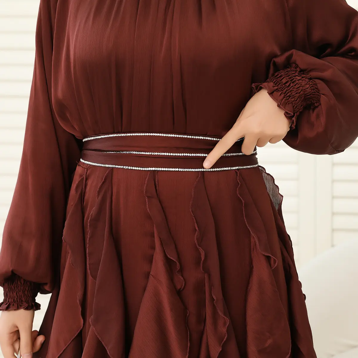 ·Triple-row crystal waist belt for shape and sparkle