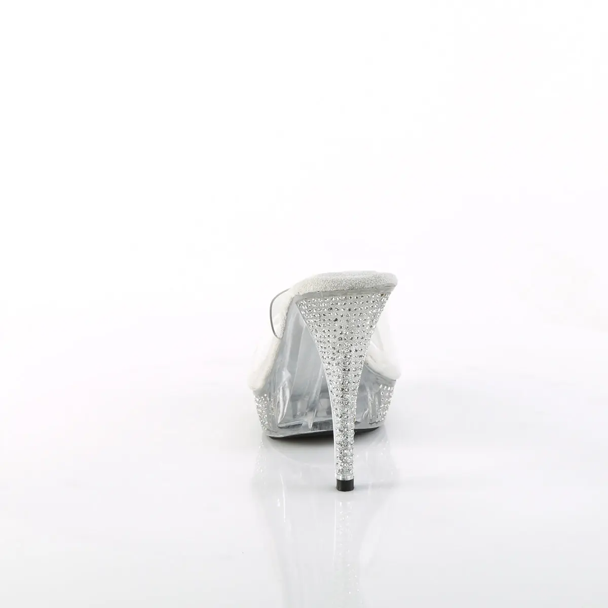 Get ready to make a bold statement with the Elegant-401 slides from Fabulicious. These gorgeous slides feature a 4 1/2 inch (114mm) heel, along with a 1-inch (25mm) platform for maximum comfort and style. The rhinestone-embellished heel and platform add just the right amount of sparkle, making them perfect for any special occasion. Whether you're attending a wedding or going out for the night, these slides will certainly turn heads and make you radiate with glamour.
