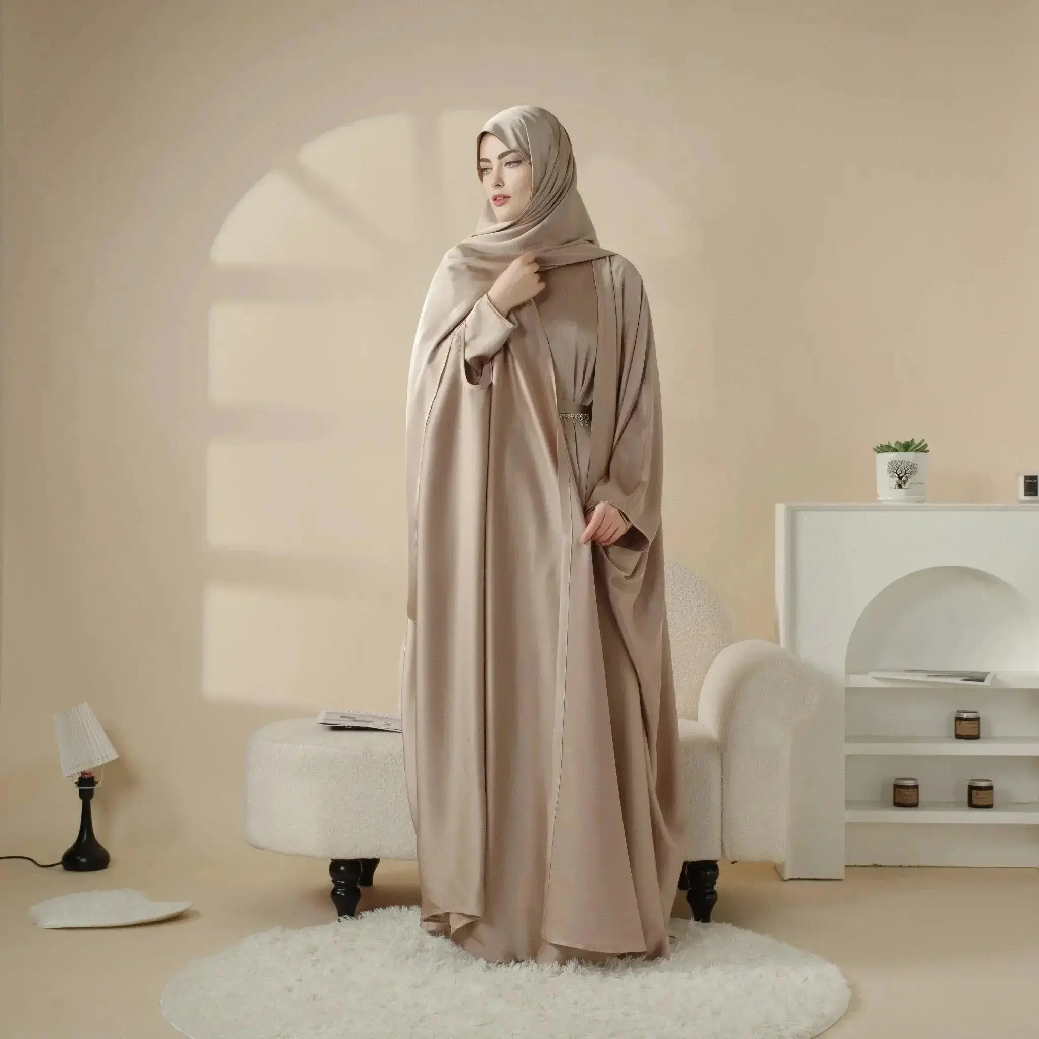 I was so eager to get this set, after trying it on, I was so disappointed, couldn’t wear them again. The inner dress is super tight and uncomfortable and no stretch at all, the outer abaya is a mess, all over the place, keeps falling off. I’m slim, 5’5 and got the M for reference.