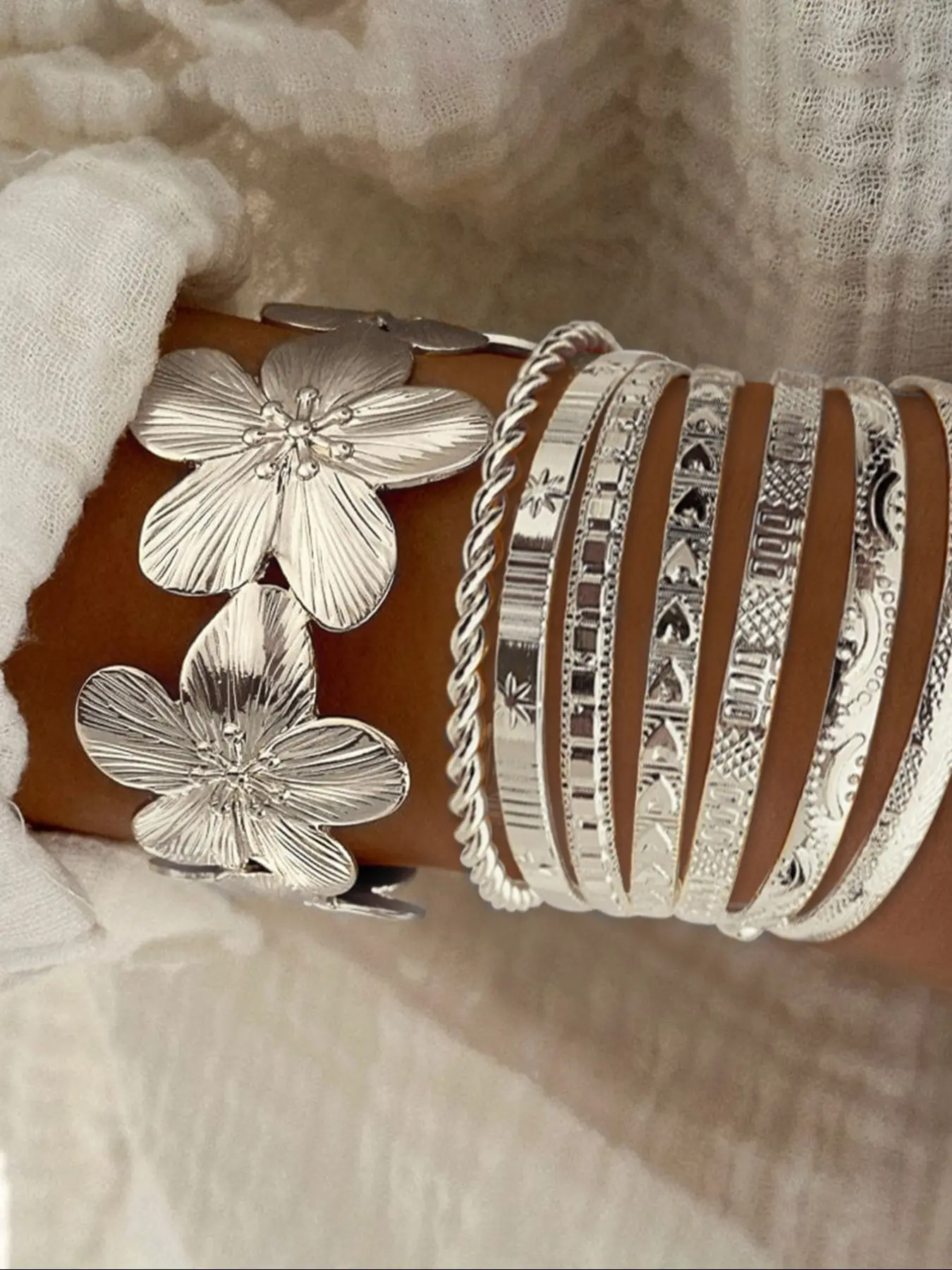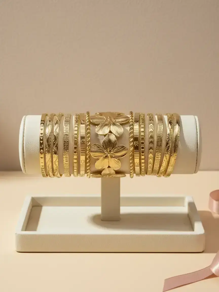 8 Pieces Hollow Floral and Bangle, Trendy Stack Bangle, Flower Design Bracelet, Bangle Bracelet Set, Elegant Women's Jewelry for All Seasons, Perfect Valentine's Day Gift