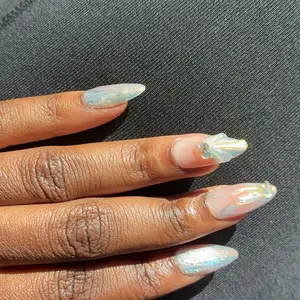These nails are absolutely beautiful in person. They are less blue than they appear in the photos, it’s more of that iridescent blue that can shift in the light and give color. Also the adhesive works really well and feels sturdy on the nail. Sadly, I feel like they were extremely long for me.