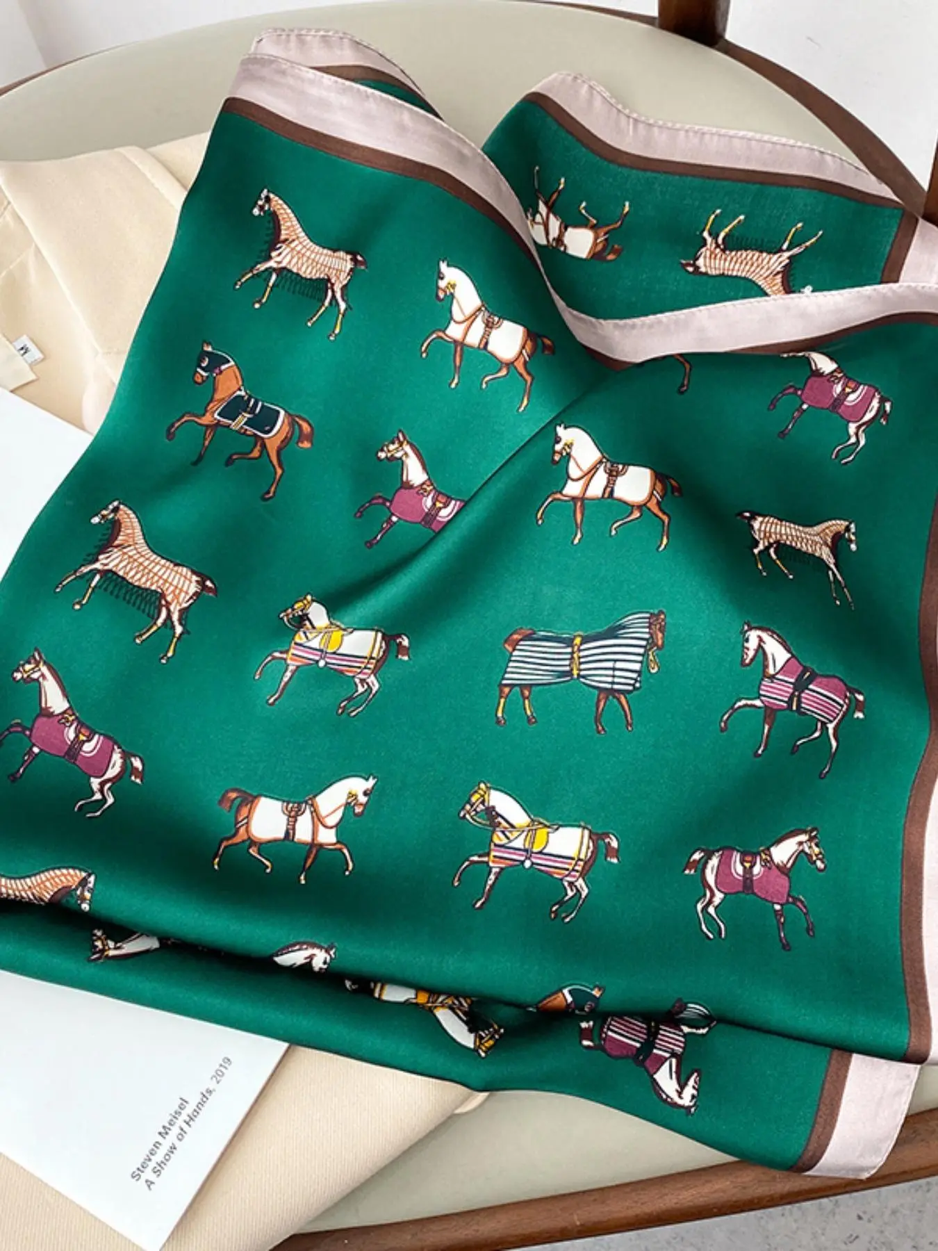 #scarf #print #satin #horse #elegant