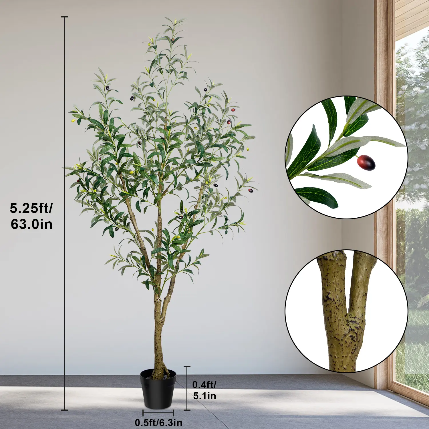 Ultra-Realistic Design – Detailed leaves and fruits mimic a fresh olive tree.