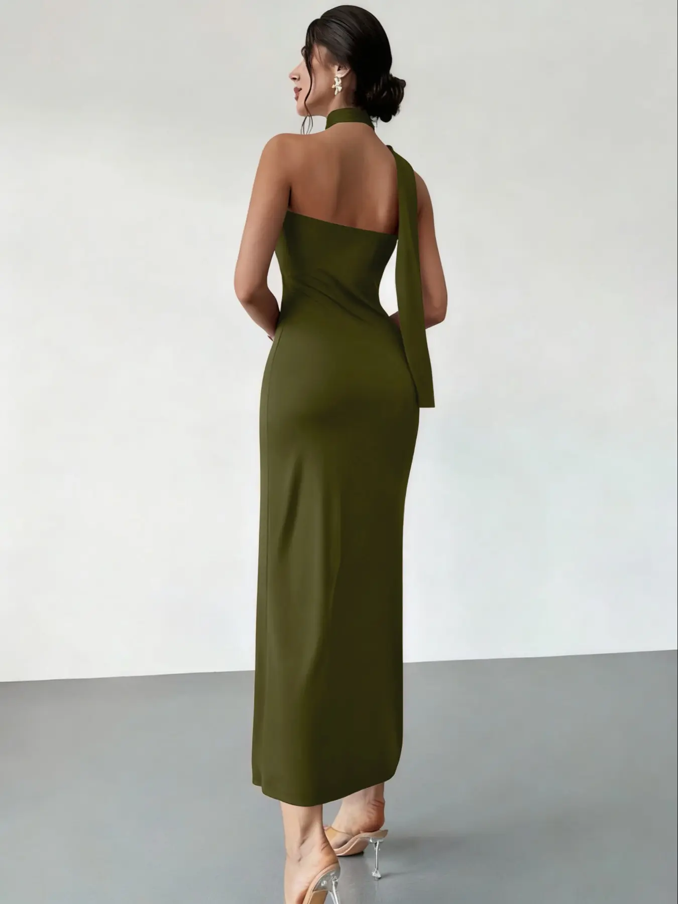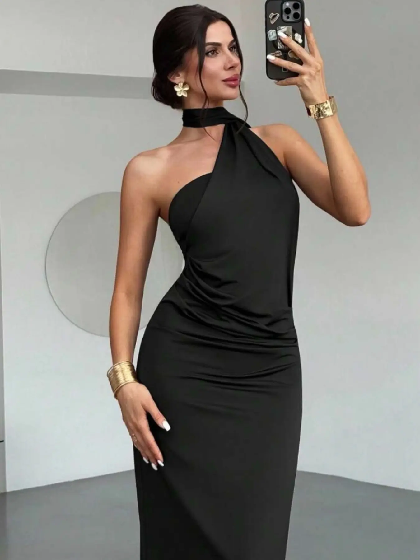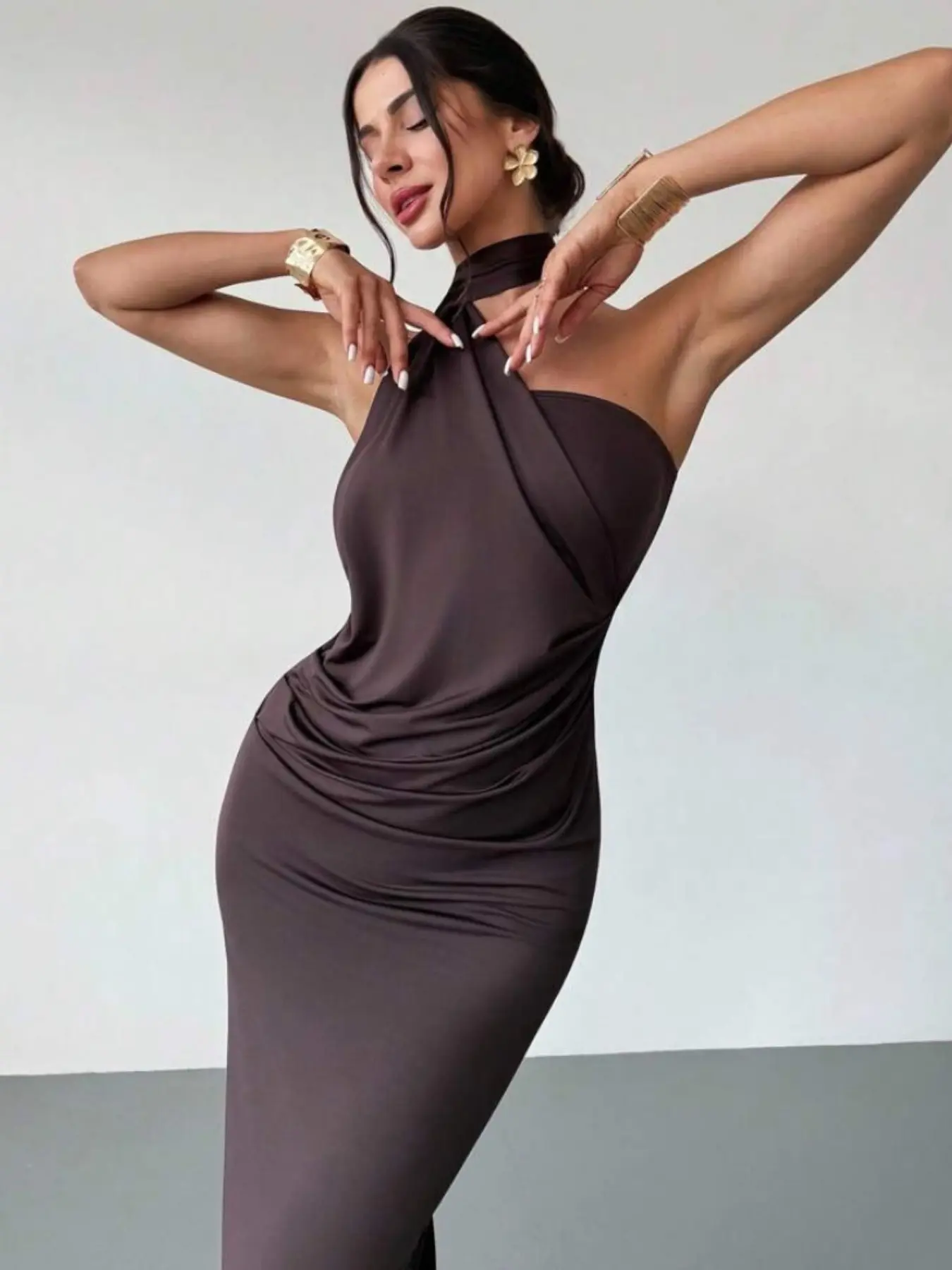 Elegant Backless Bodycon Dress, Unique Cross Neck Design, Flattering Wrinkles Detailing, Perfect for Evening Out & Street Style #TikTokShopBlackFriday #TikTokShopCyberMonday #spotlightfinds #ootd/  #clothing