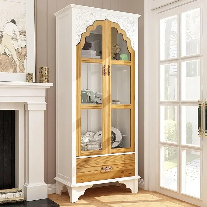 ·【Eye-Catching Appearance】 brown and white bookcase uses white panels, carved brown doors and vintage metal handles to show elegant and luxury charm. This cabinet will perfectly update your room decor and add value.