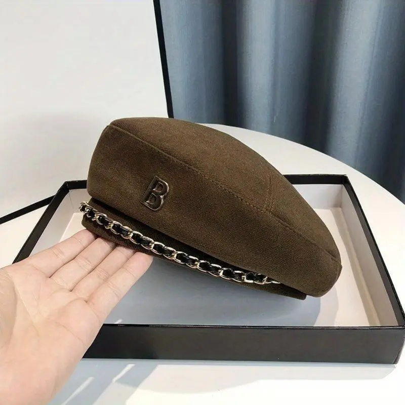 Elegant British Style Beret with Chain Decor - Lightweight Vintage Design for Casual & Formal Wear School Uniform Compatible