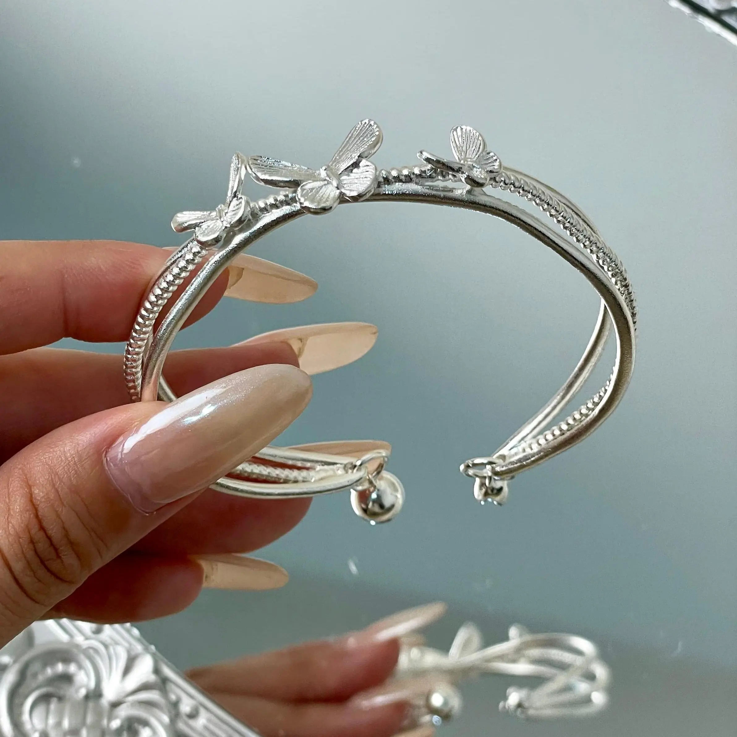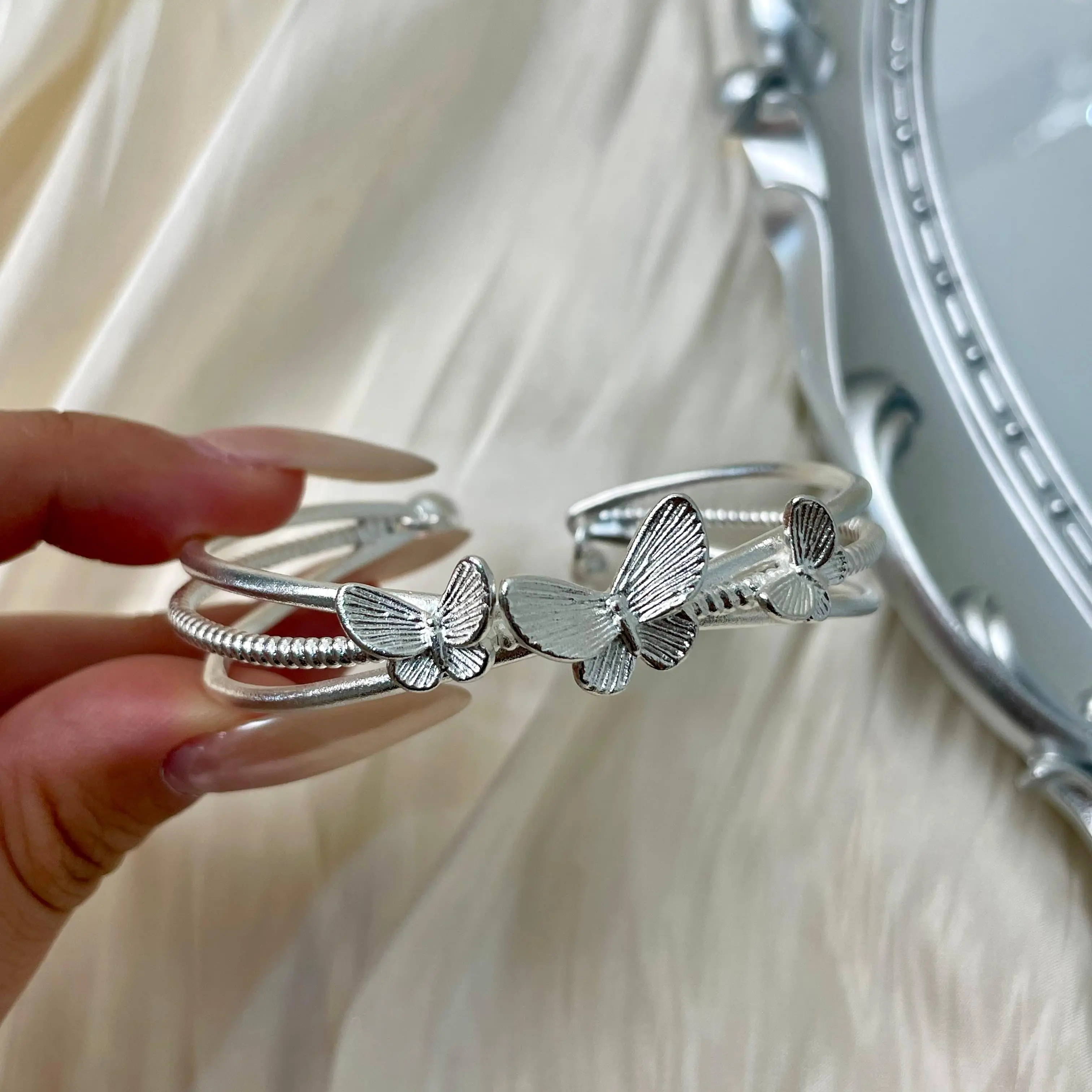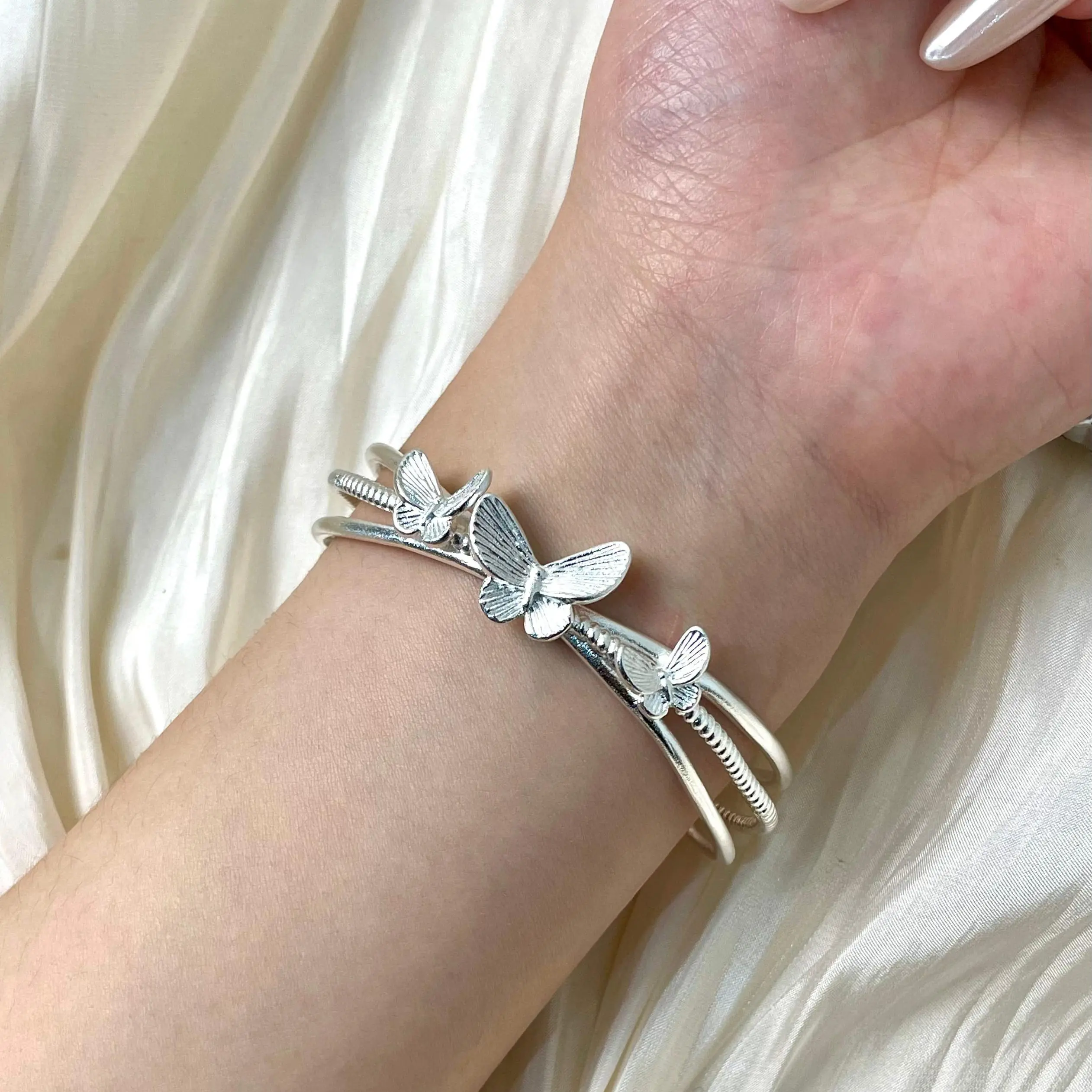 【Exquisite Triple Butterfly Design】 Featuring three intricately detailed butterflies in flight, this bangle symbolizes freedom, soul, and transformation. The delicate relief craftsmanship captures the lifelike texture of butterfly wings, adding a touch of nature-inspired elegance to your wrist.