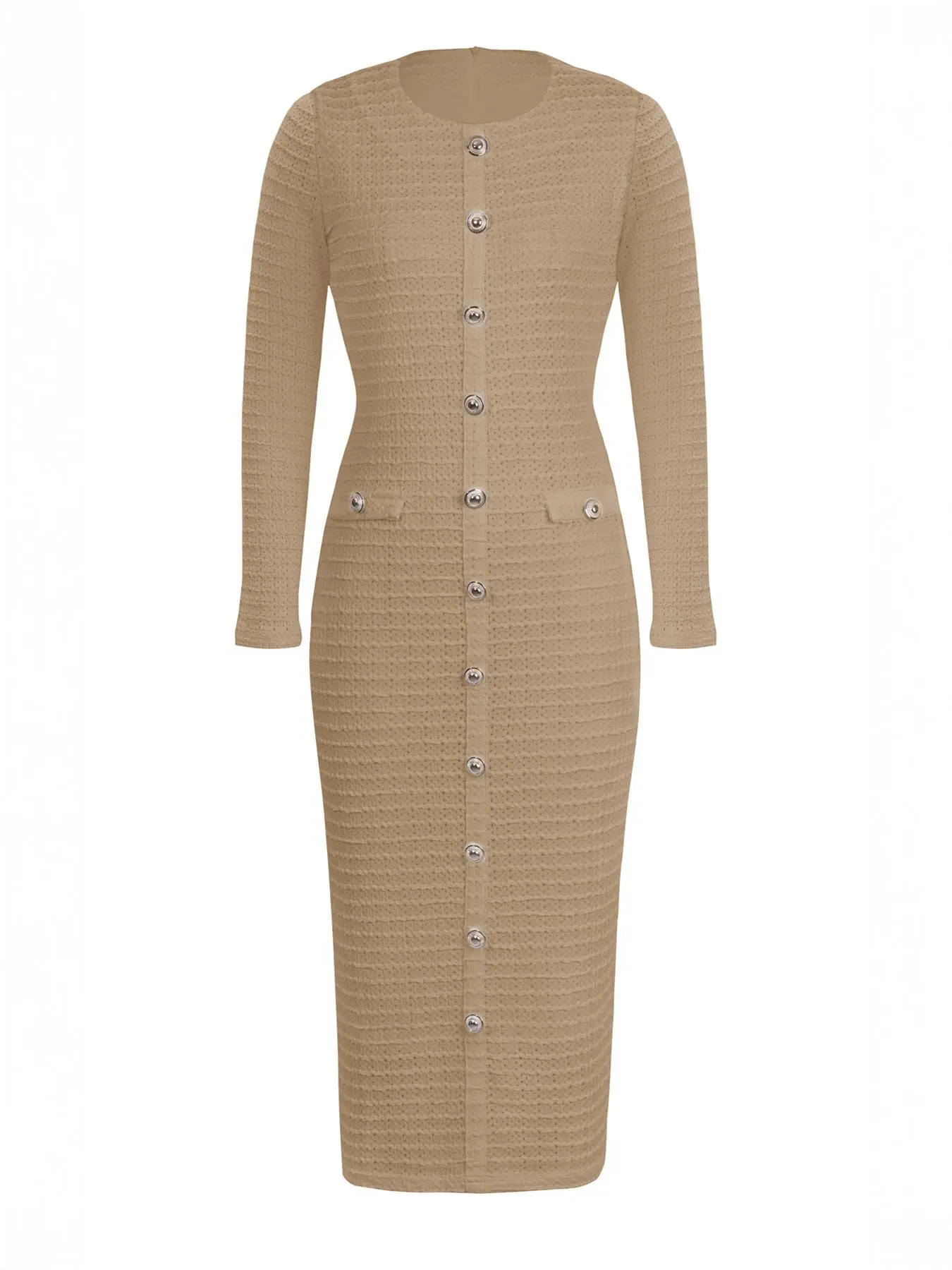 Elegant Casual Long Sleeve Maxi Dress for Women, Womenswear, Thin Knitted Fabric Perfect for All Seasons, Fitted Plain Design for Stylish Comfort