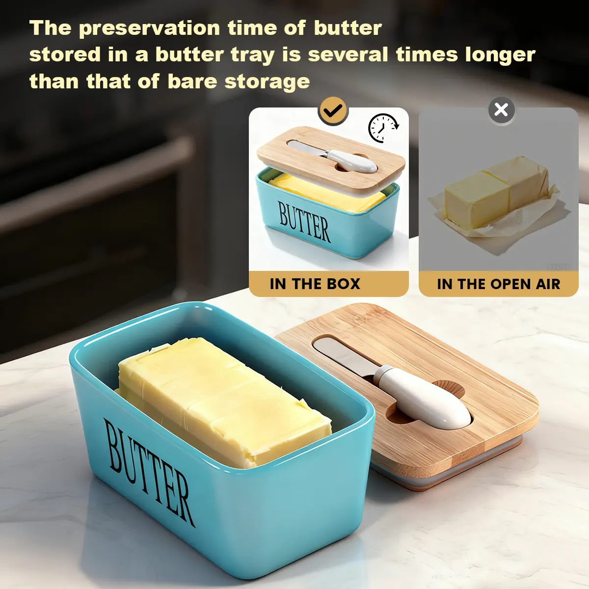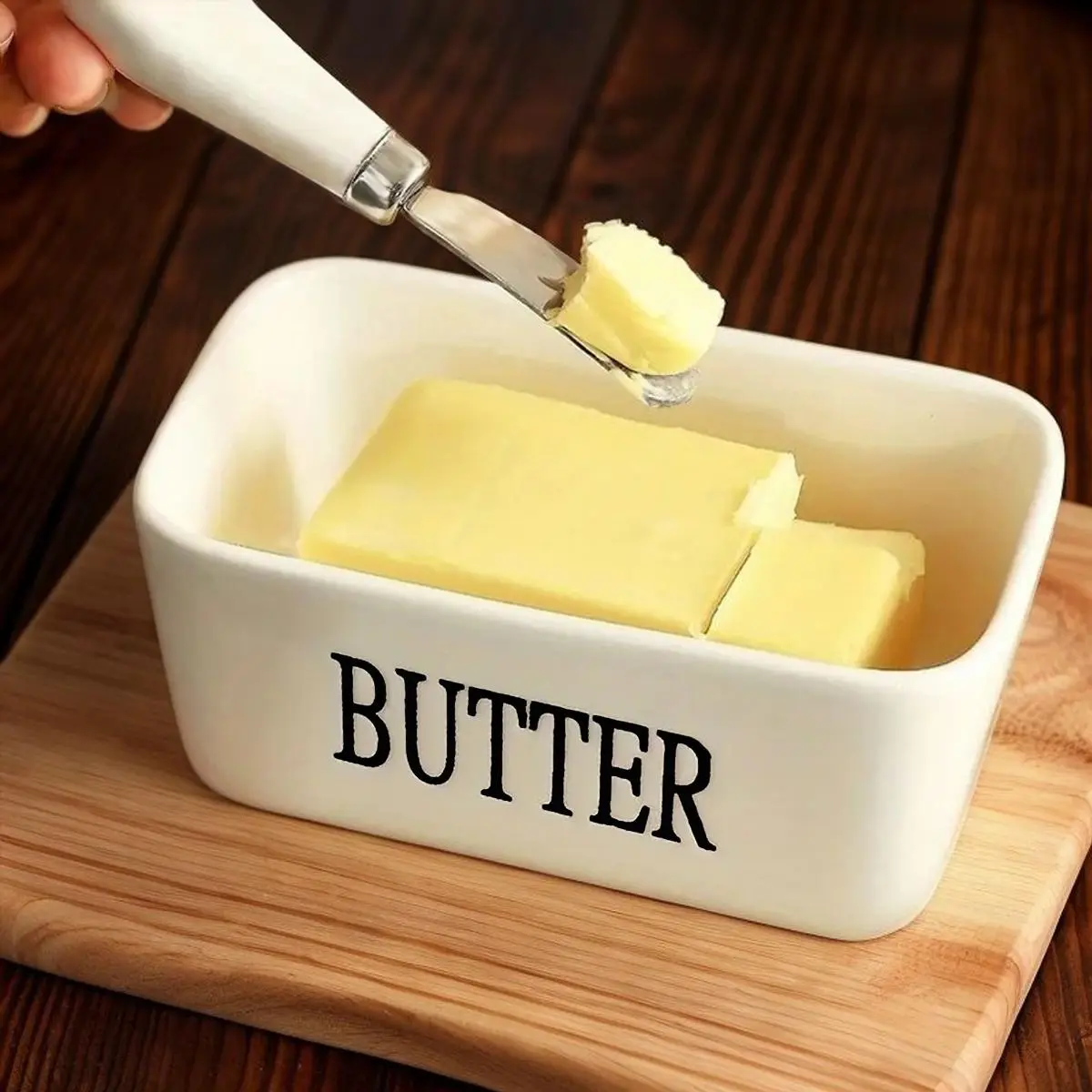 ✨ Elegant Ceramic Butter Plate Set with Lid and Knife - This set is perfect for butter lovers. It includes a spreading knife ideal for butter, cheese, and other spreads. Enhance your culinary experience with this multifunctional set.