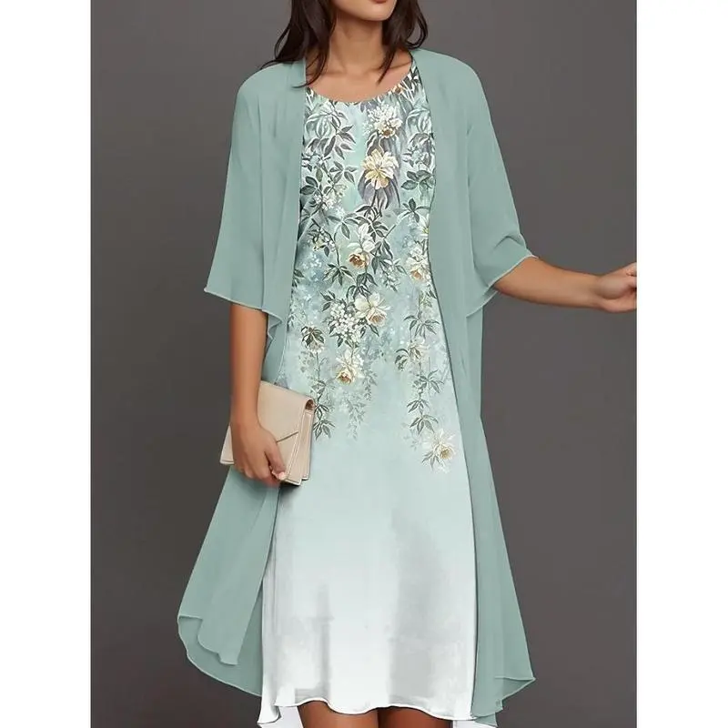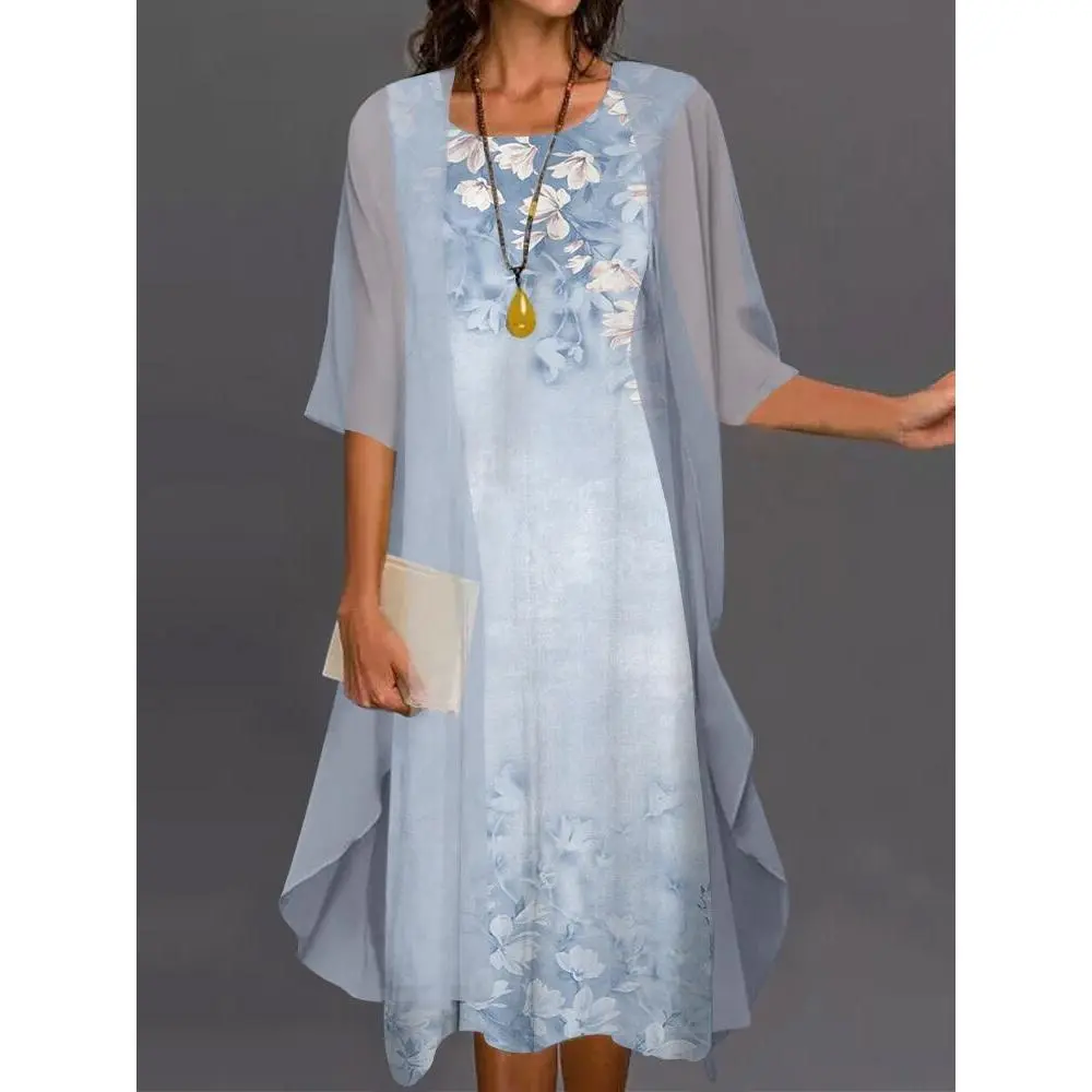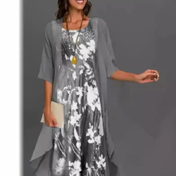 2025 Spring and Autumn Fashion Elegant Chiffon Dress Two-Piece Set Casual Womenswear