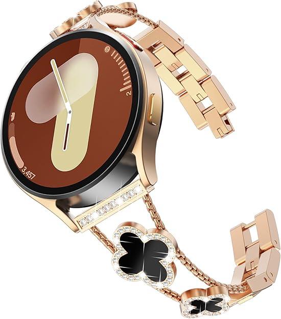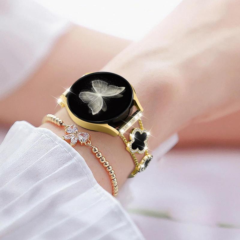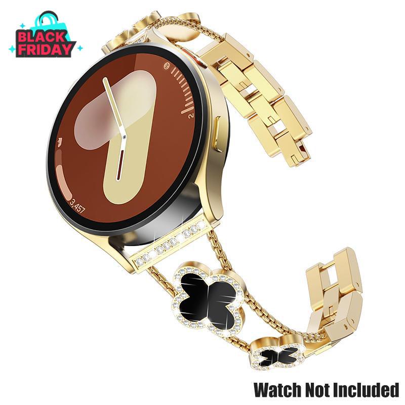 This stylish loop band features a dazzling four-leaf clover motif—symbolizing luck and beauty. Sparkling rhinestones and polished metal add a luxurious touch to your Galaxy Watch. Help you stand out with confidence. Perfect for women who love fashion and tech.