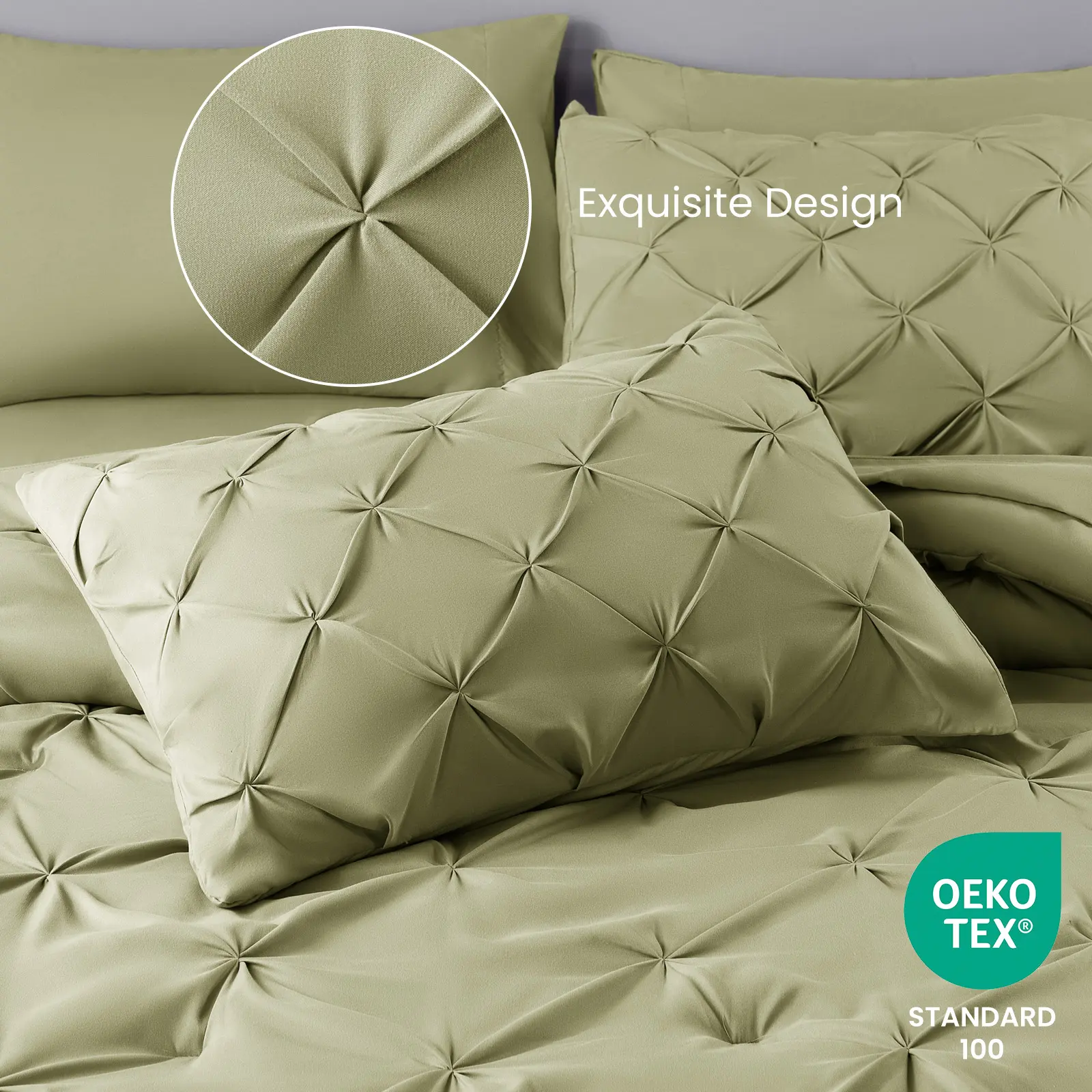 Sonoro Kate Modern Elegance in Sage Green – 7-Piece King Comforter Set