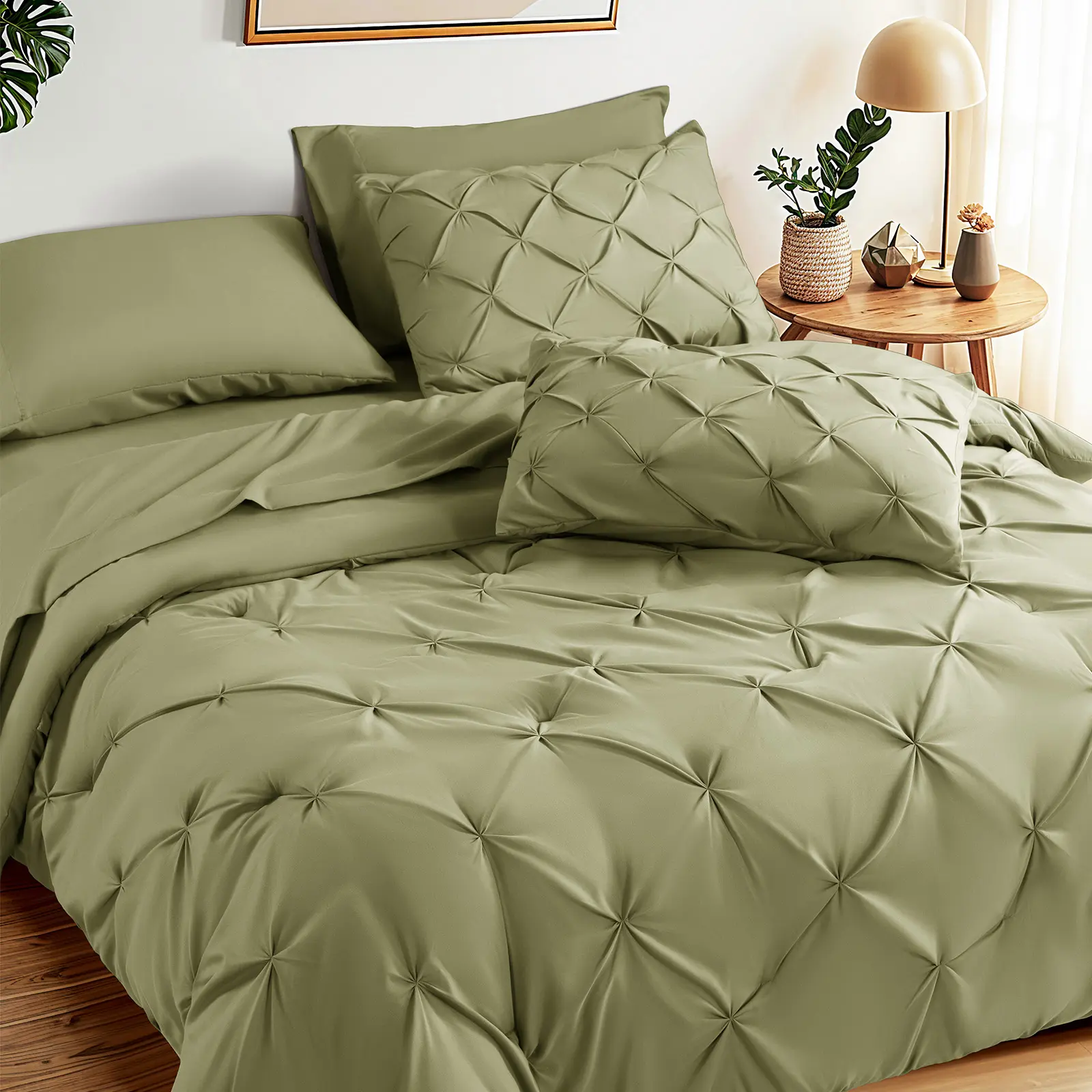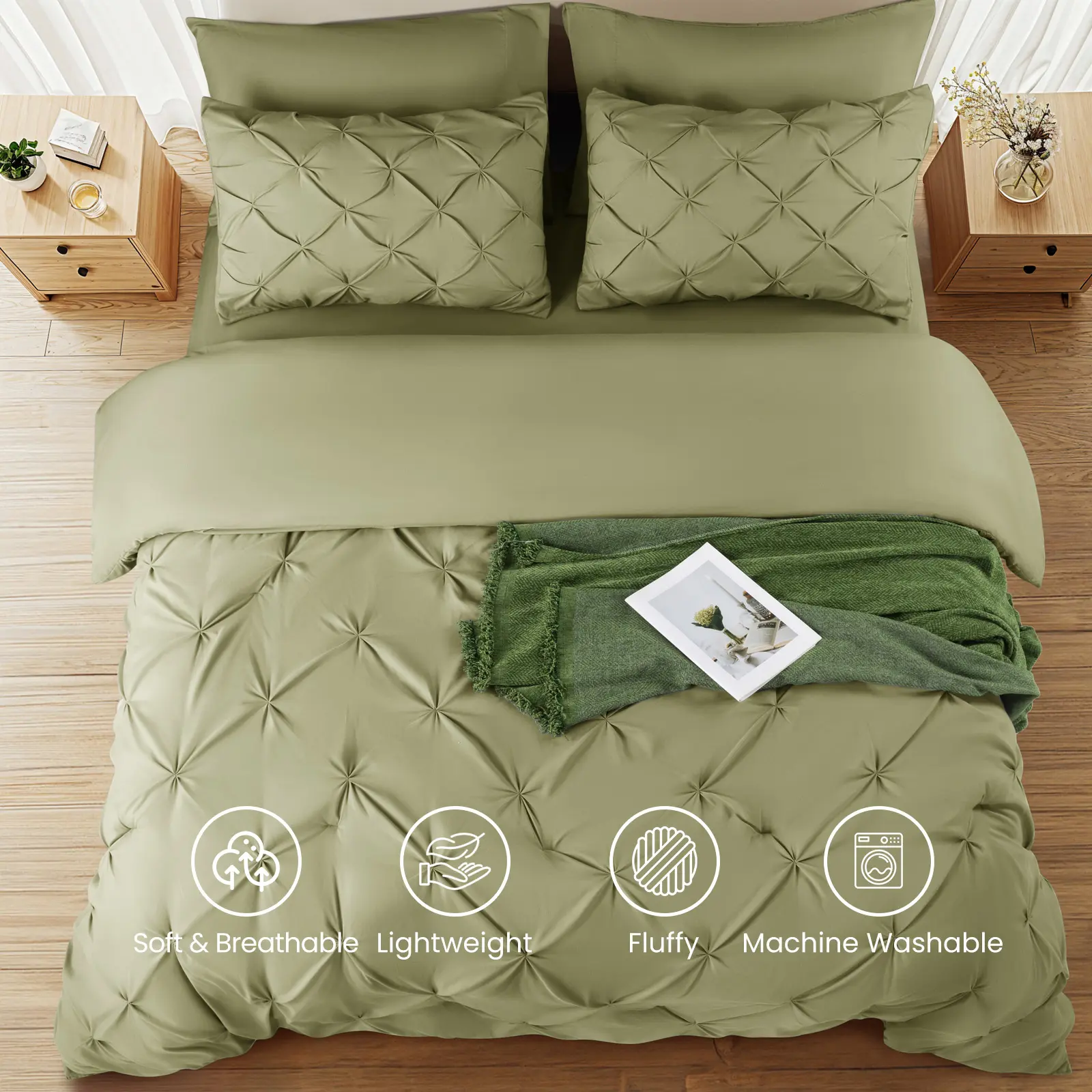 Refresh your bedroom with the calming elegance of sage green. The Sonoro Kate 7-Piece Comforter Set blends minimalist design with timeless comfort, offering a hotel-style upgrade that’s both cozy and refined. Whether for a modern master suite or a welcoming guest room, this all-season set delivers on both style and function.