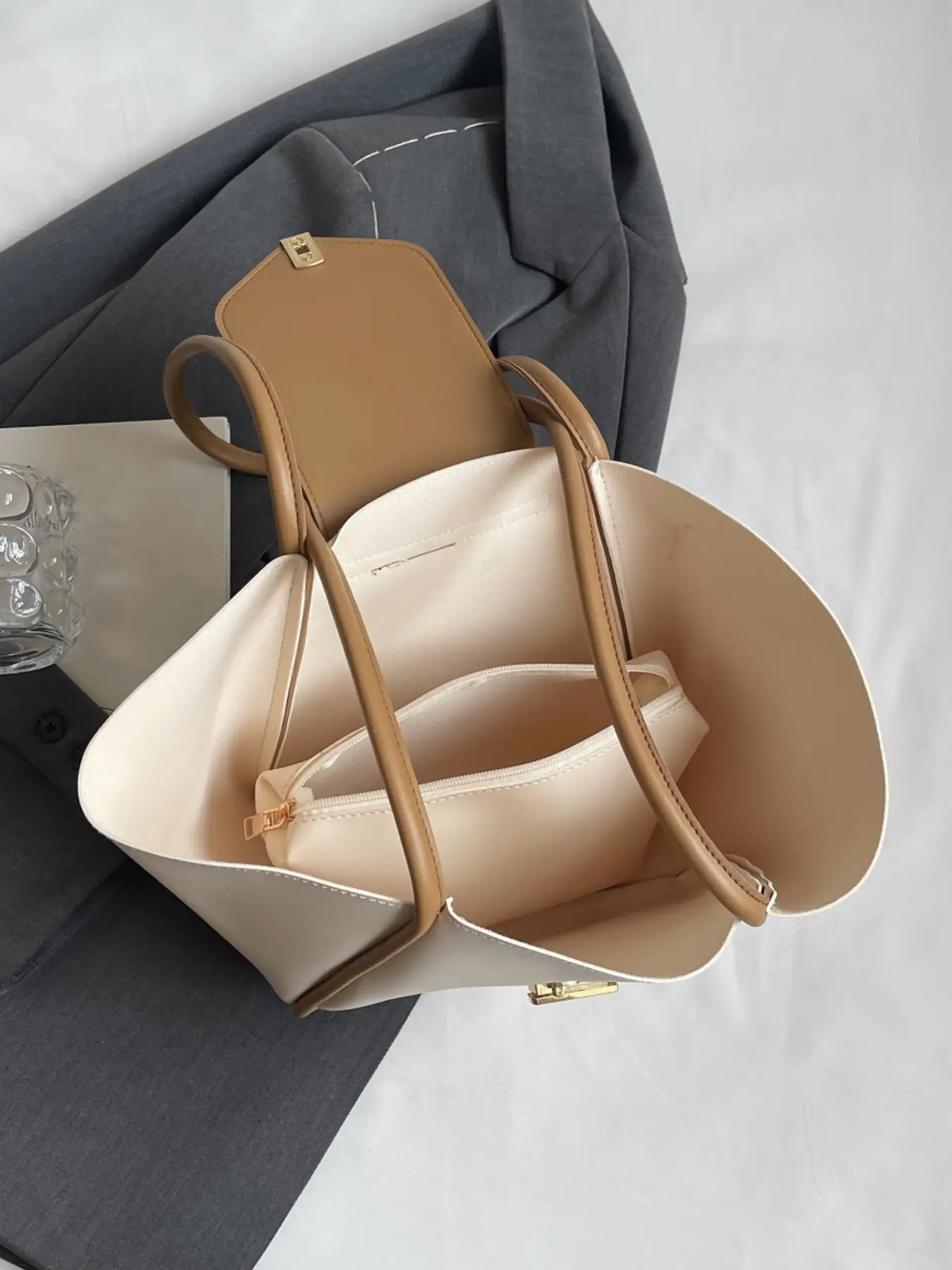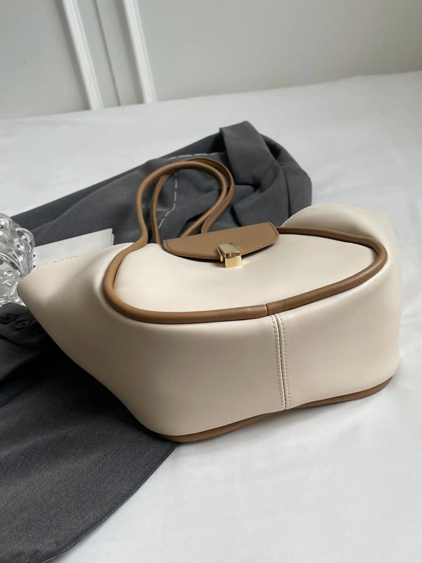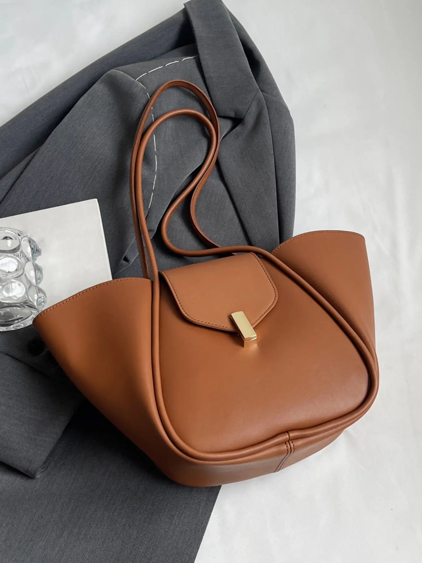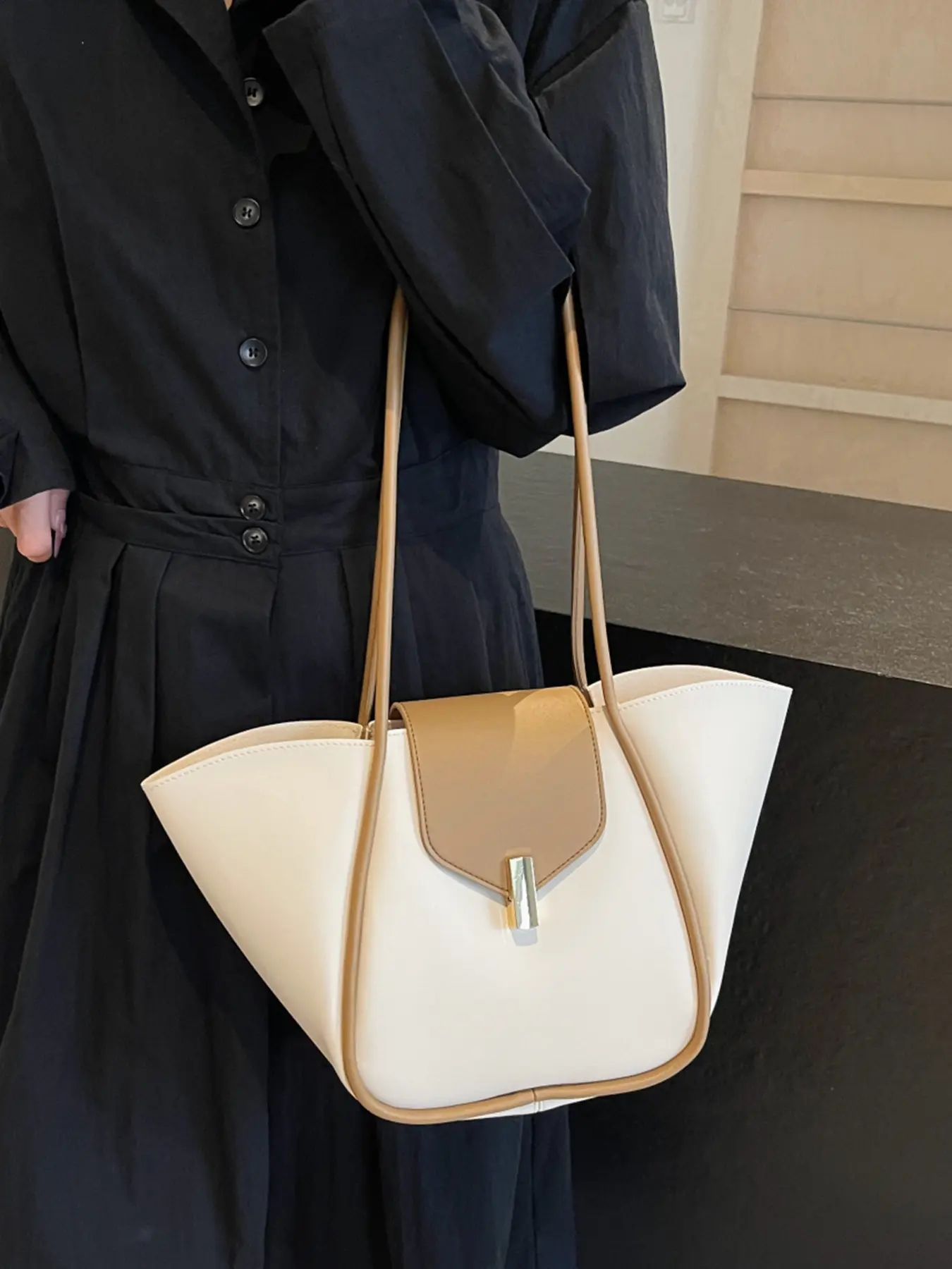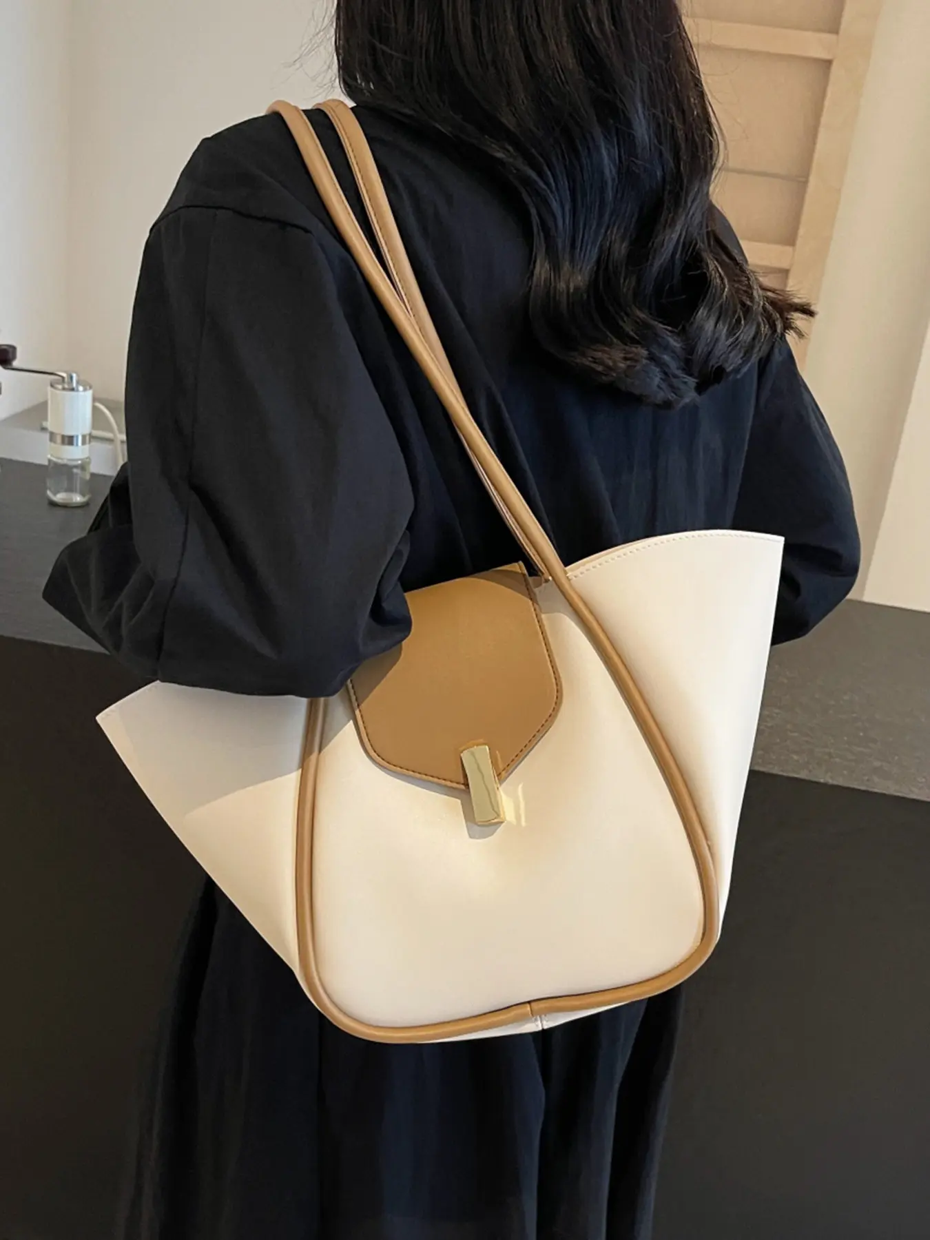 A niche and elegant shopping basket tote bag, a lock-button underarm bag, a simple solid color shoulder bag, a fashionable and textured shoulder commuter bag, a Casual Commuter Bag, suitable for daily matching, commuting and other scenarios