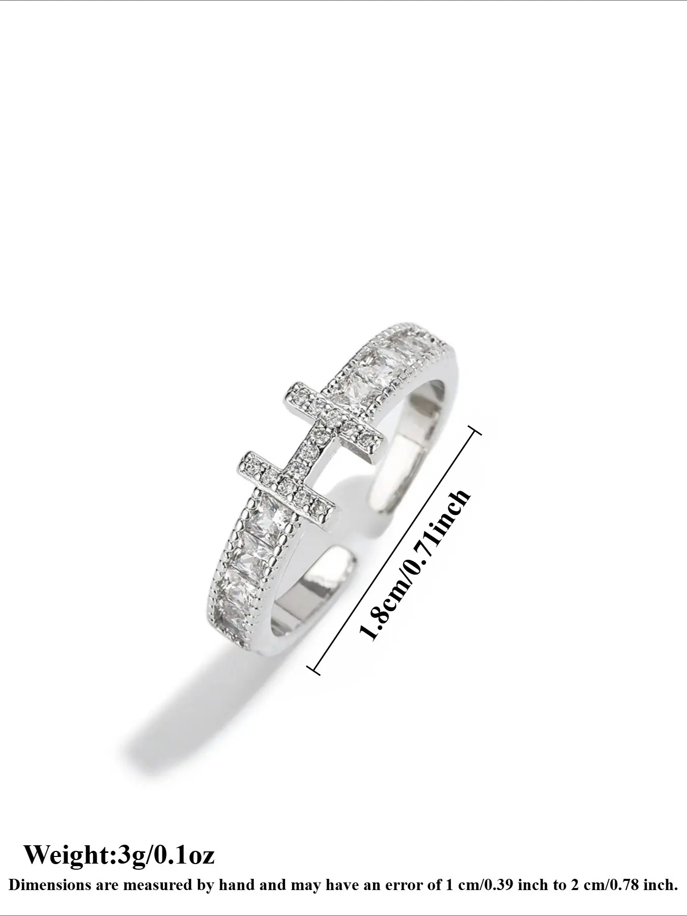 Elegant Copper Zirconia Open Ring for Women, Simple Style Daily Commute Accessory, Versatile Gift for Her, Gift Jewelry