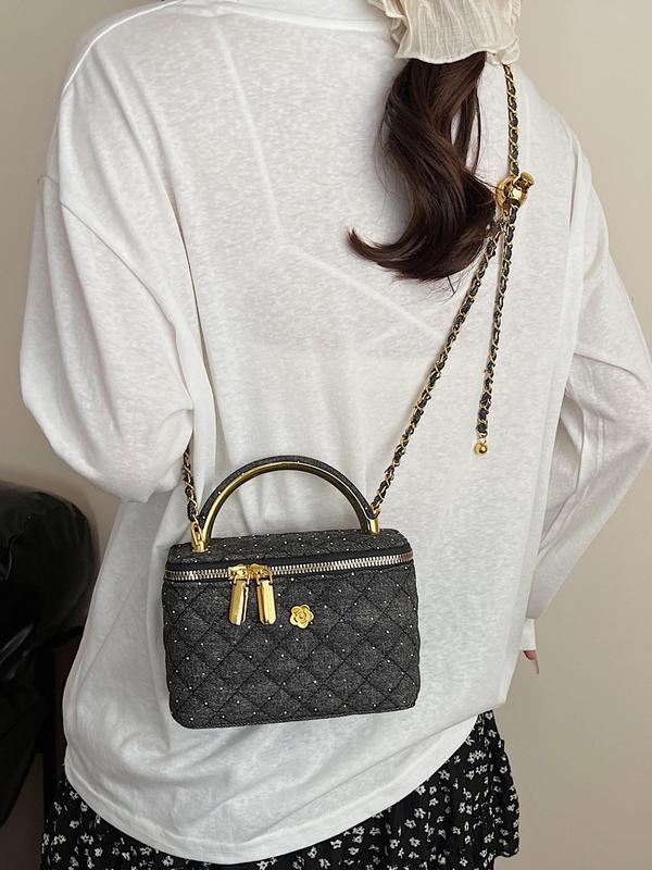 Women's Elegant Denim Design Quilted Bag, Fashionable Chain Strap Shoulder Bag for Daily Used, Casual Trendy Versatile High-quality Casual Commuter Bag, Denim Shoulder Purse