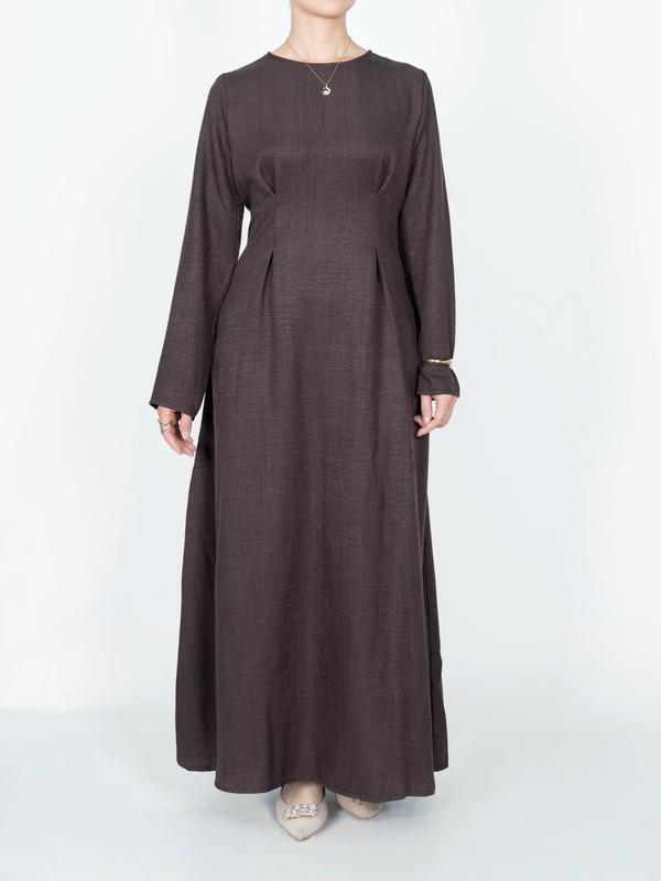 A hidden back zipper ensures easy wear and a clean silhouette.