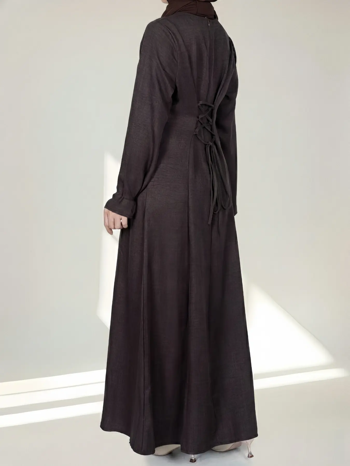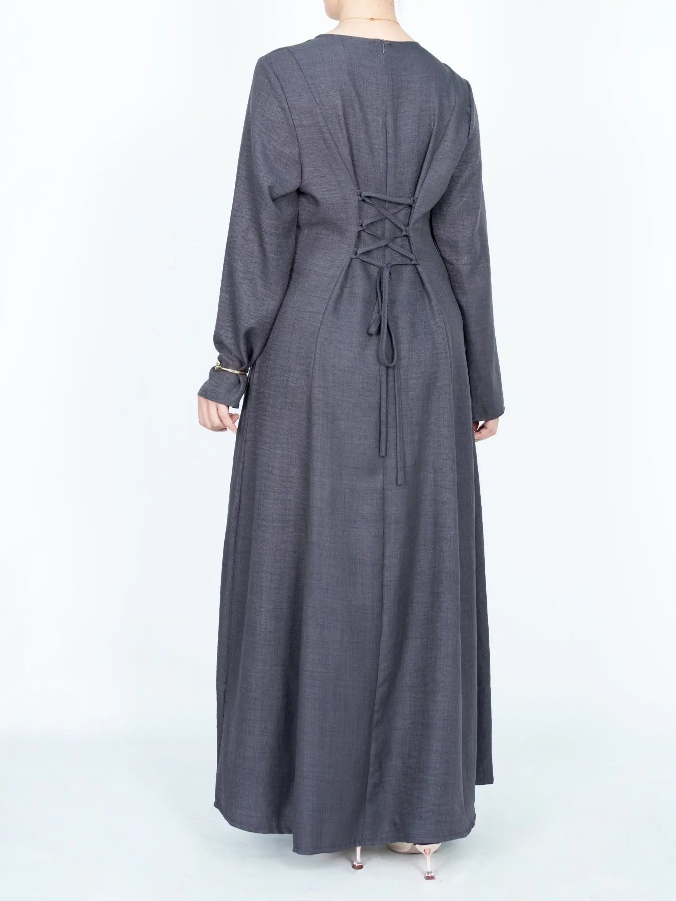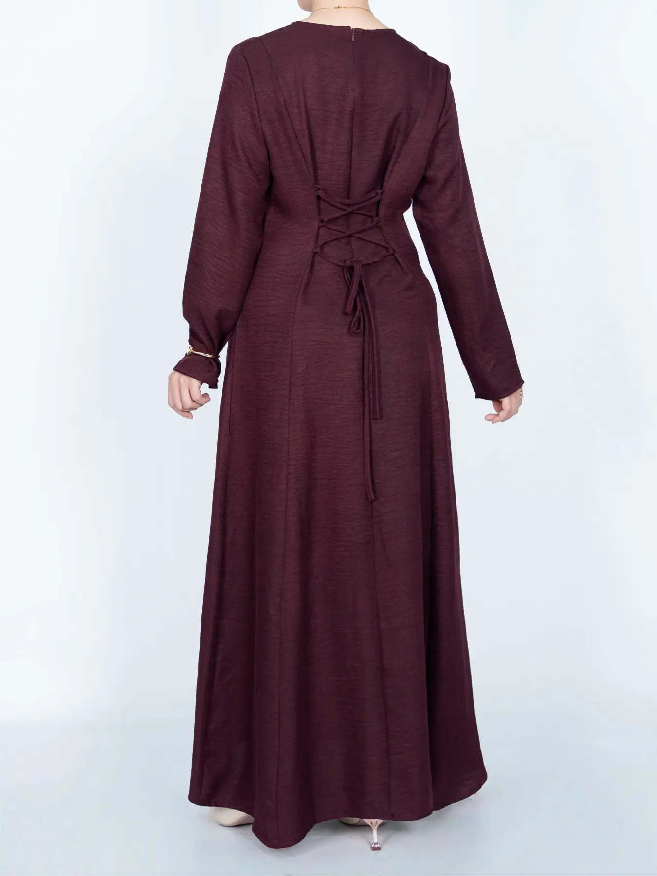 while the lace-up tie-back allows you to adjust the waist for a flattering fit.