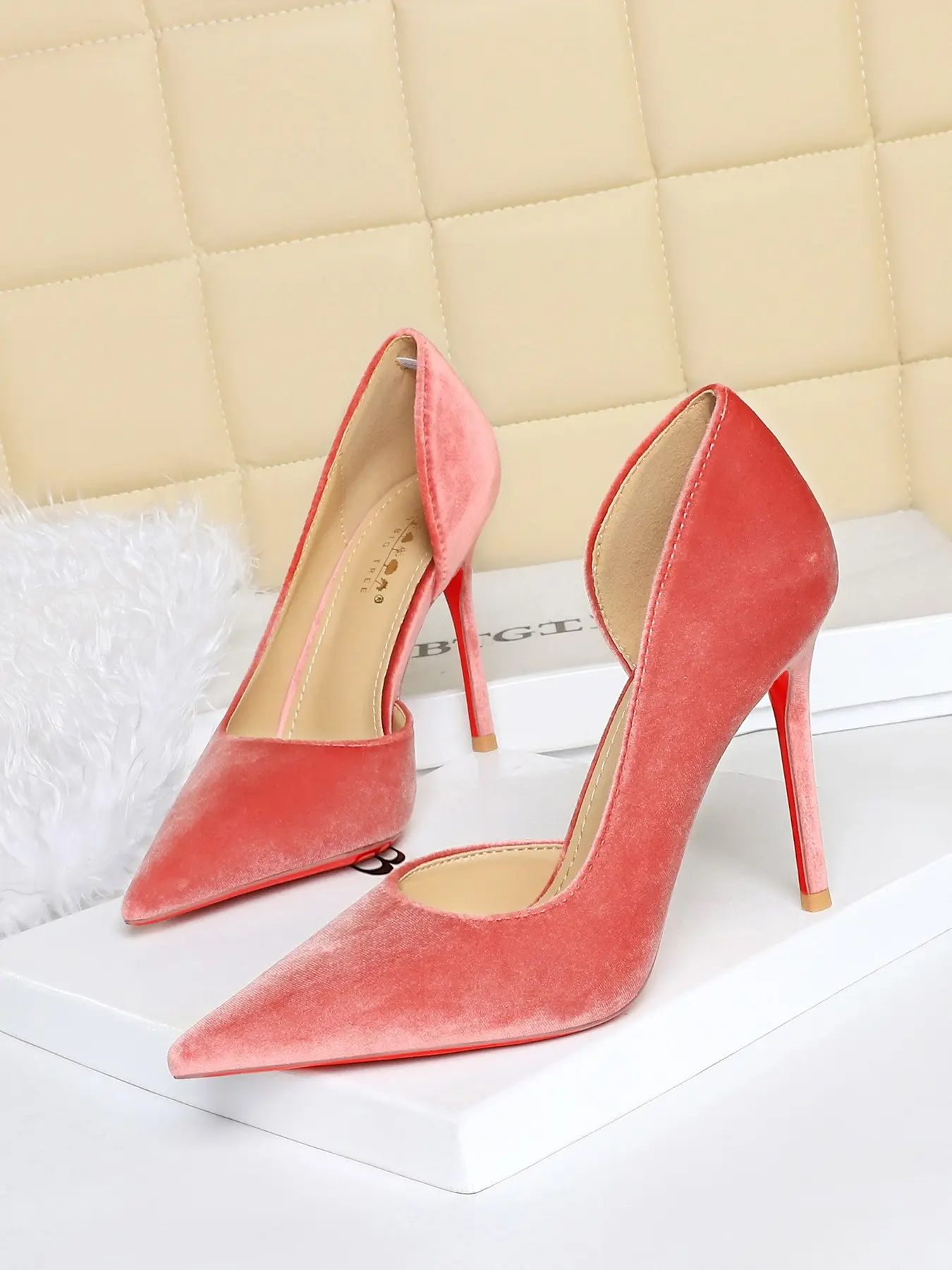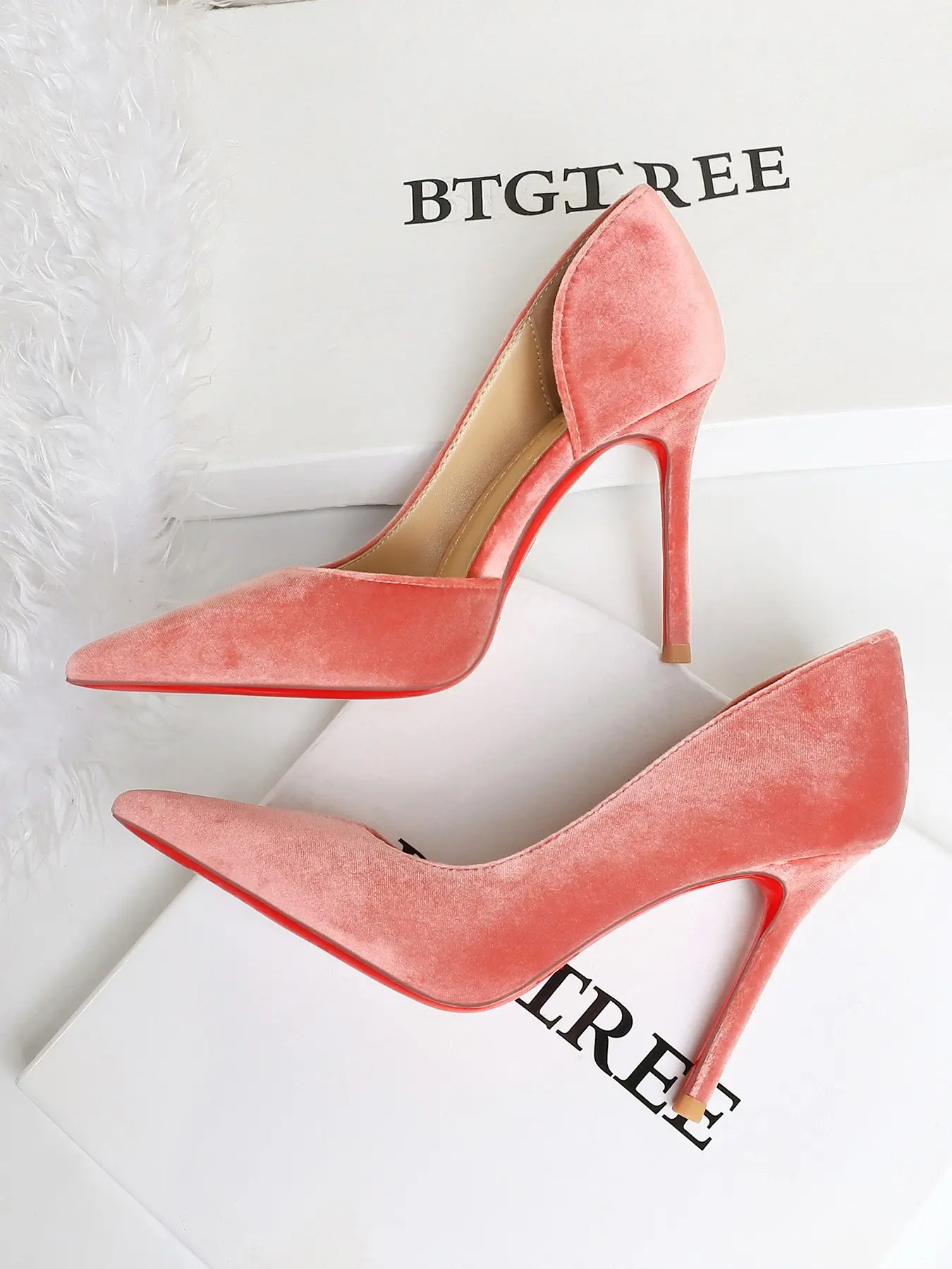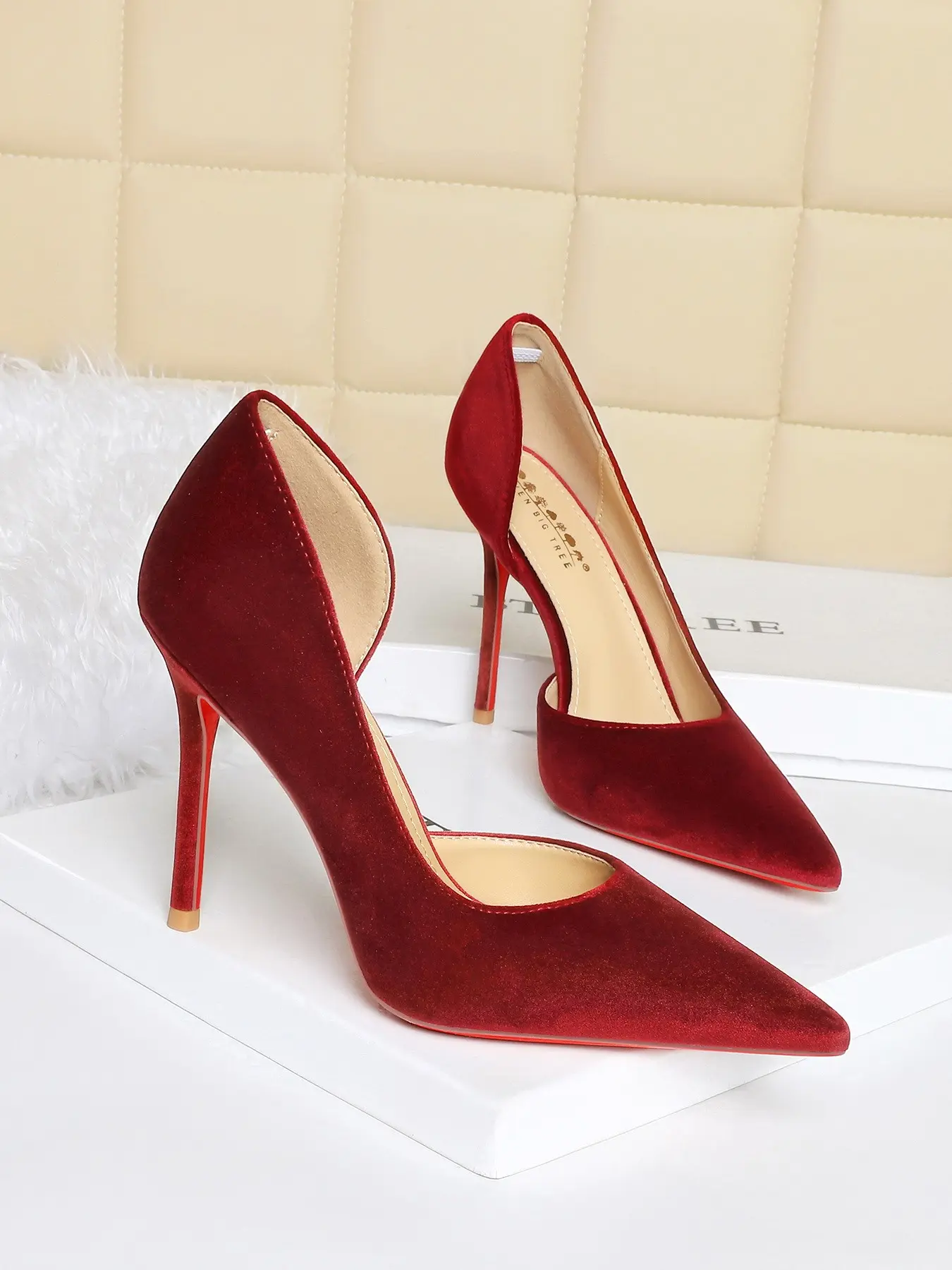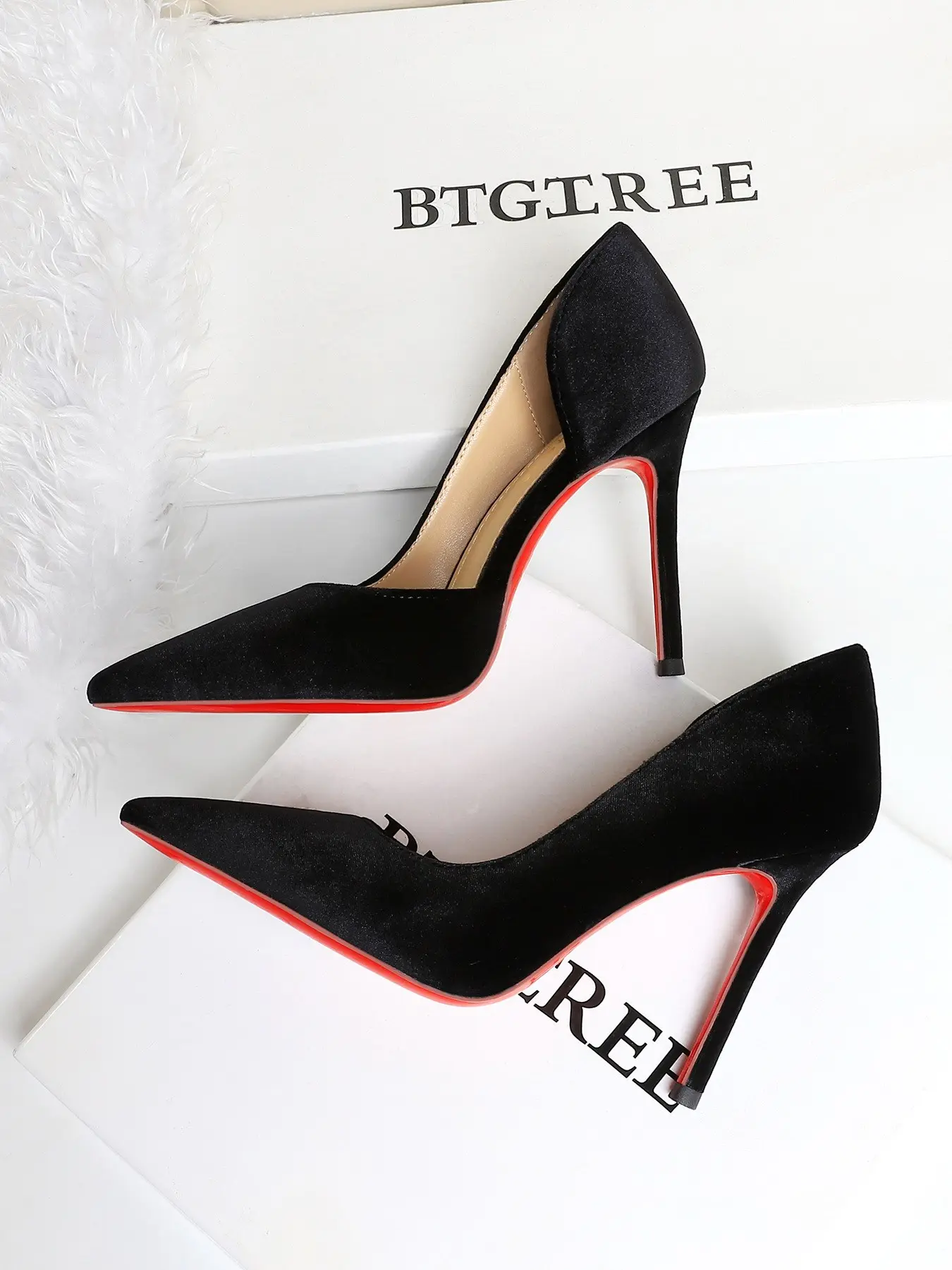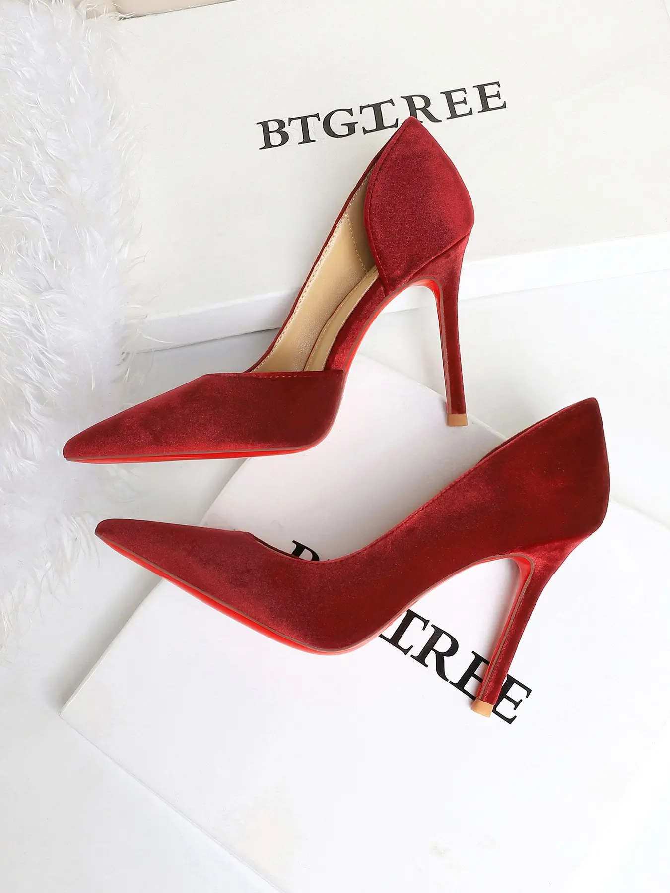 5. Elegant European Style Party Shoes, Sexy Slimming Pointed Toe High Heels Stiletto Heeled Pumps, Velvet Side Cutout Low-Cut Single Shoe for Women
