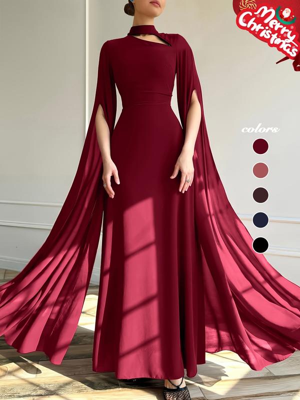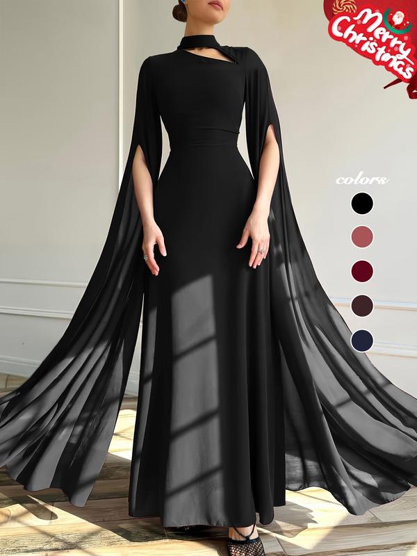 1pc Elegant Formal Evening Long Dress with Cape Sleeve, Wedding Guest Dress Women
