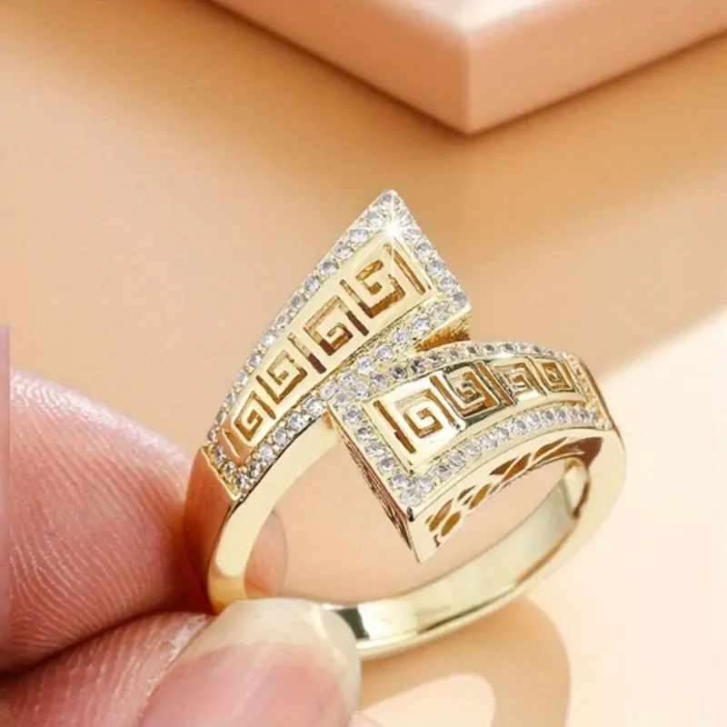 Exactly as shown. Beautiful, elegant, amazing design. Looks great and like expensive. But at the bottom part of the finger and with just a week to use is losing the gold plated already and it is awful and sadly little disappointed.