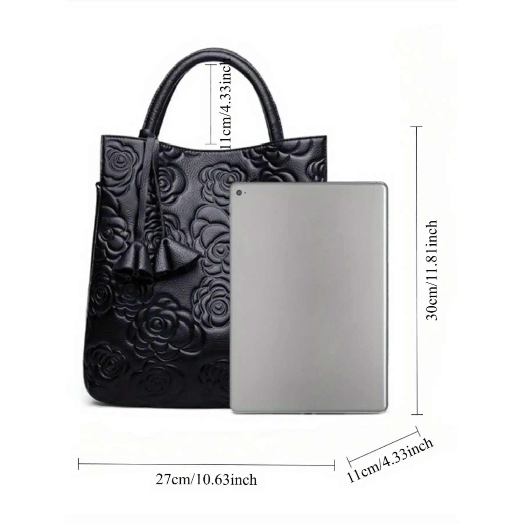 Light luxury and elegant vintage women's floral embossed handbag with large capacity, fashionable vegan leather tote bag, detachable shoulder strap for women's wallet and shoulder bag, suitable for daily use and work, making it a perfect holiday gift