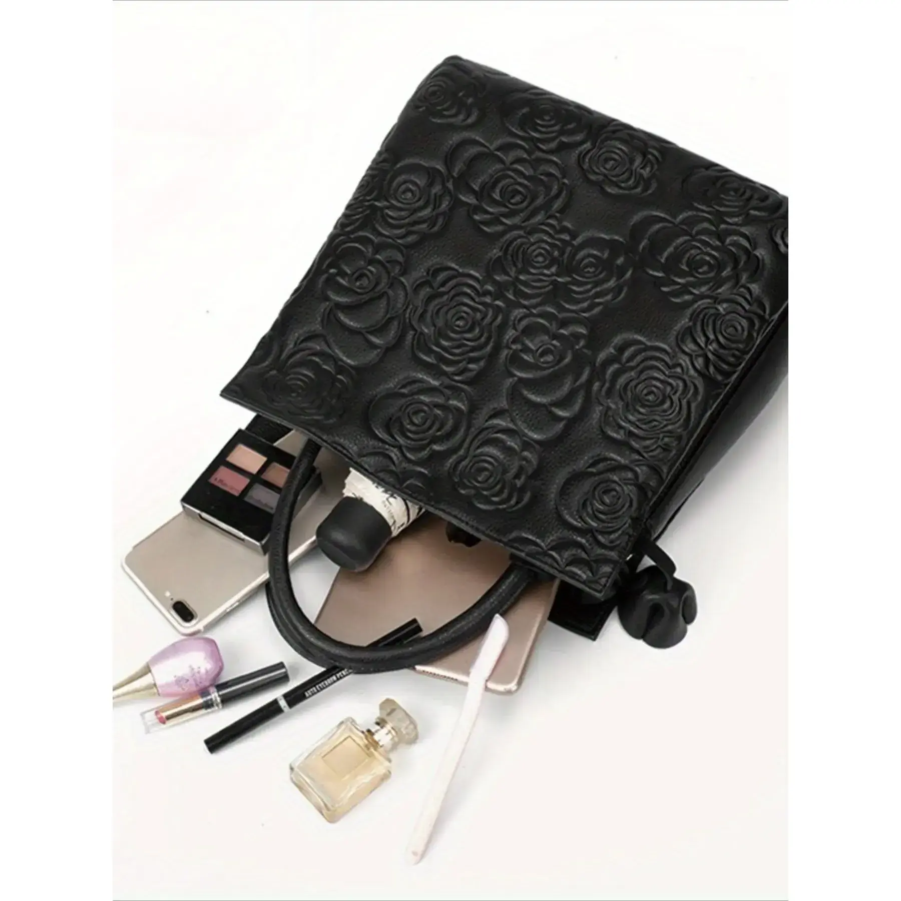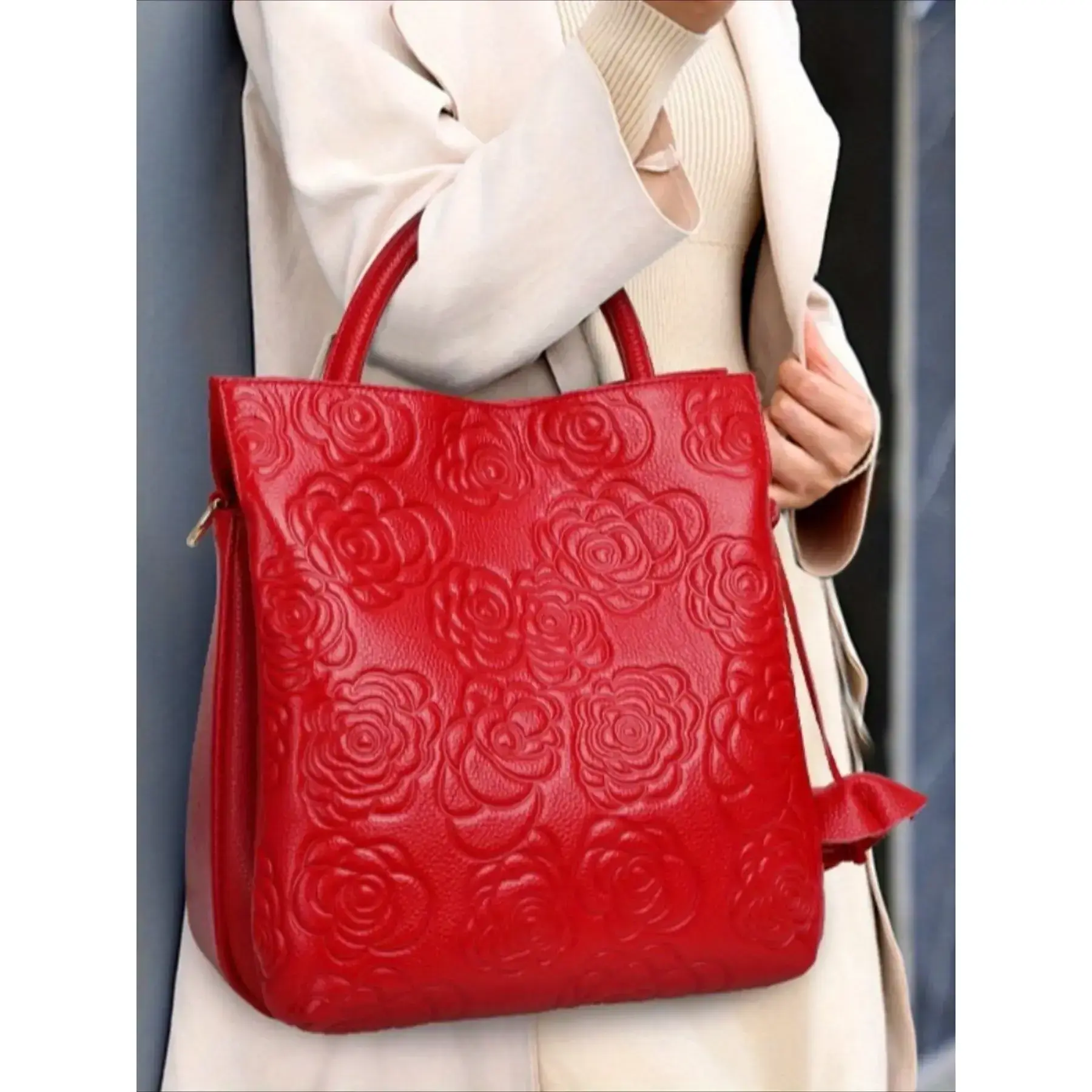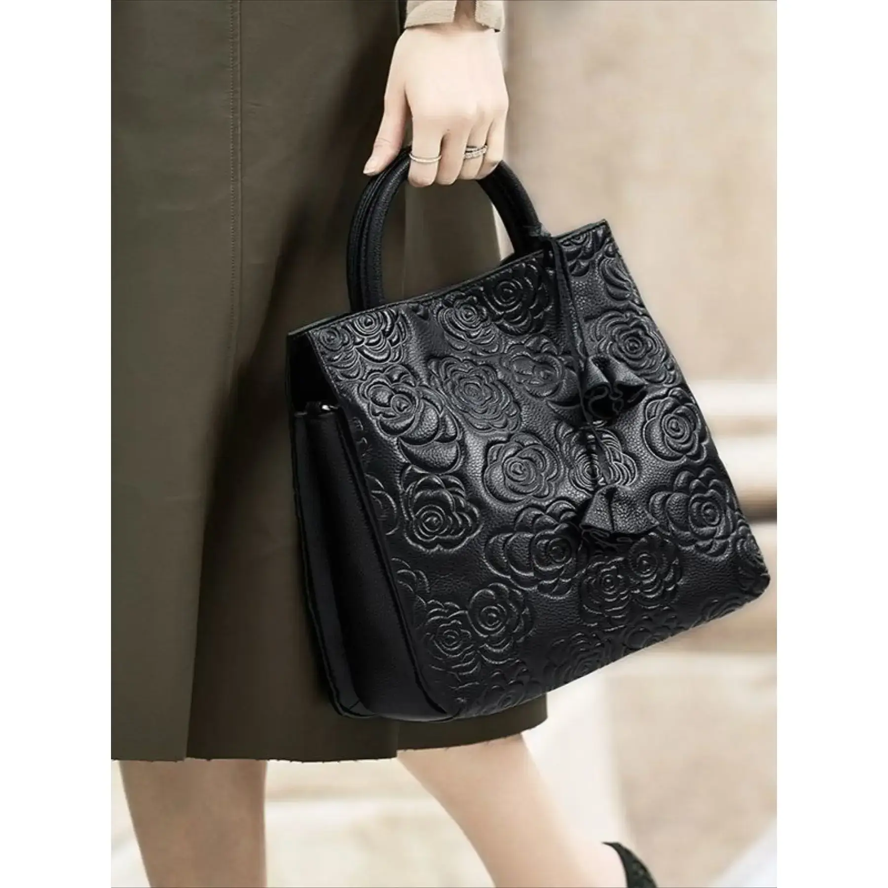5. Light luxury and elegant vintage women's floral embossed handbag with large capacity, fashionable vegan leather tote bag, detachable shoulder strap for women's wallet and shoulder bag, suitable for daily use and work, making it a perfect holiday gift