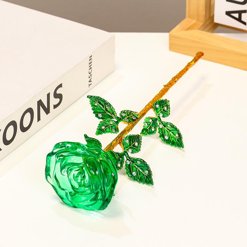 I received a glass rose that looks beautiful and delicate. The craftsmanship is nice overall, but it didn’t come with a base, which was disappointing. Without it, the rose feels incomplete and hard to display properly. Three stars.