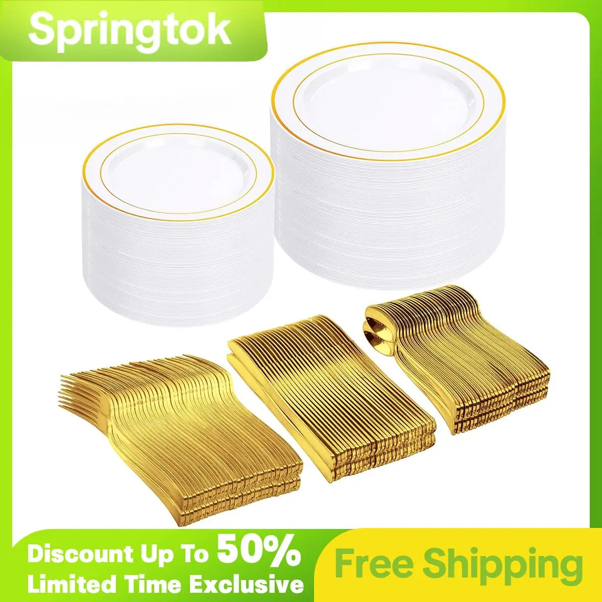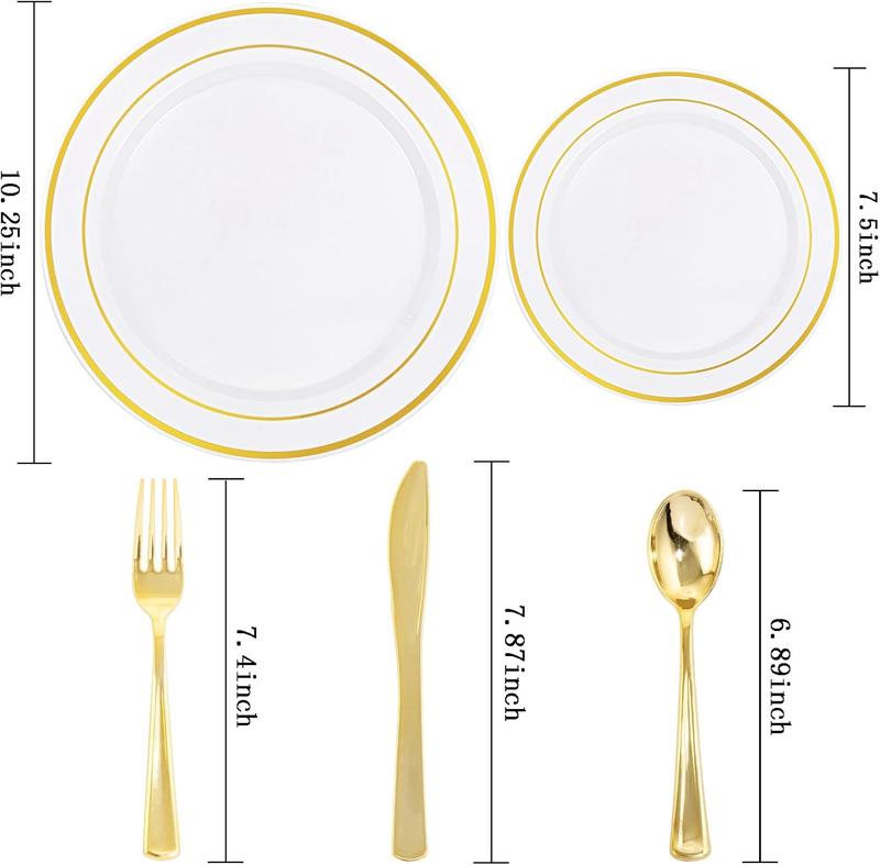 500pcs Gold Plastic Dinnerware Sets, Includes: 100 Gold Rim Dinner Plates, 100 Salad Plates, 100 Plastic Silverware Set, Perfect Fancy Disposable Plates for Party and Wedding