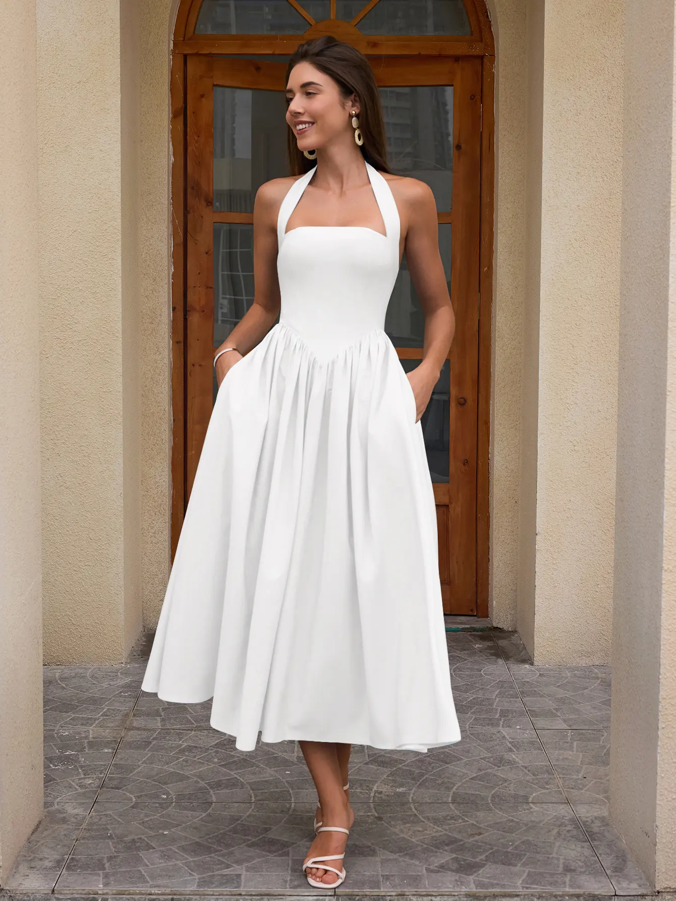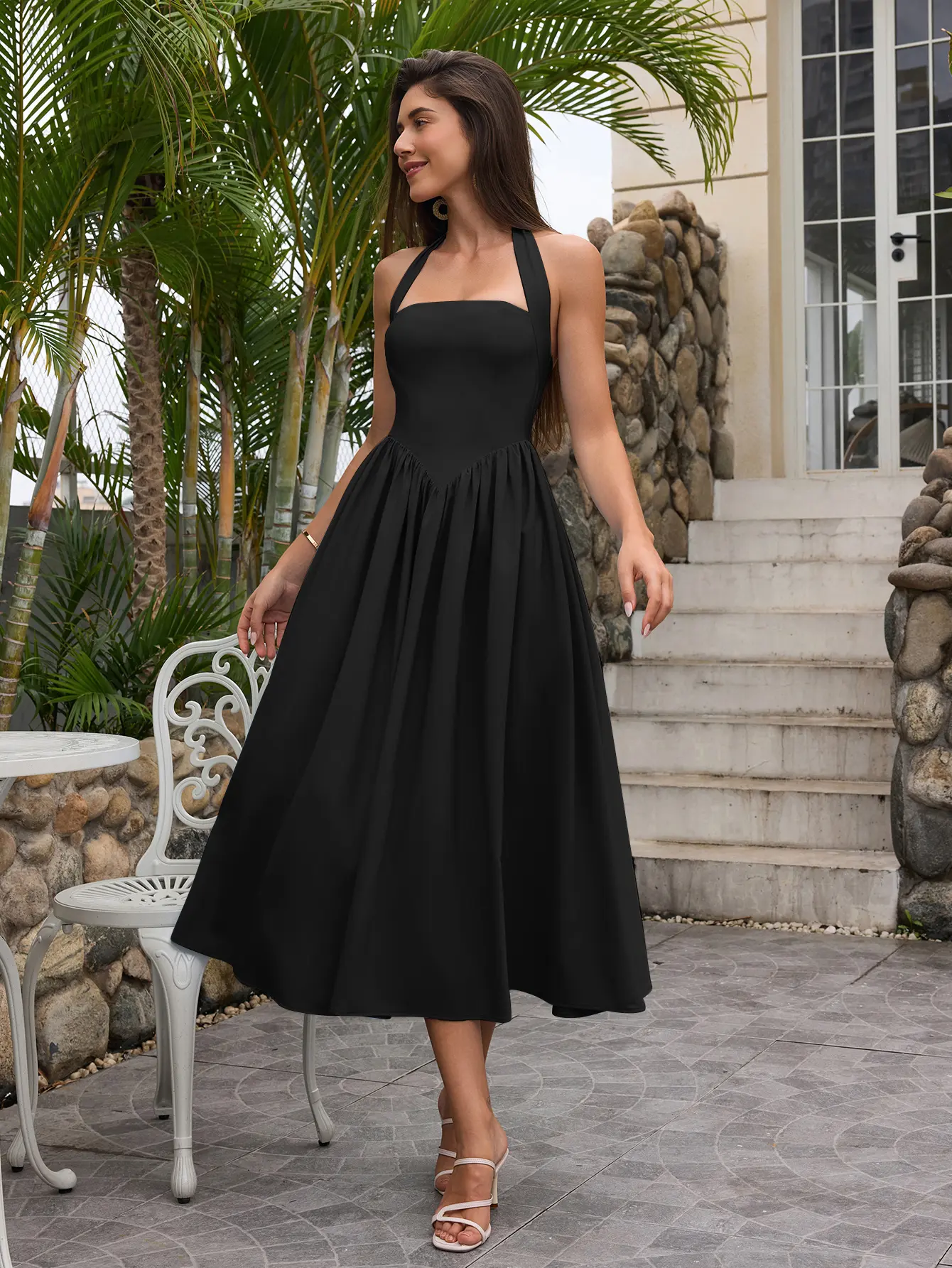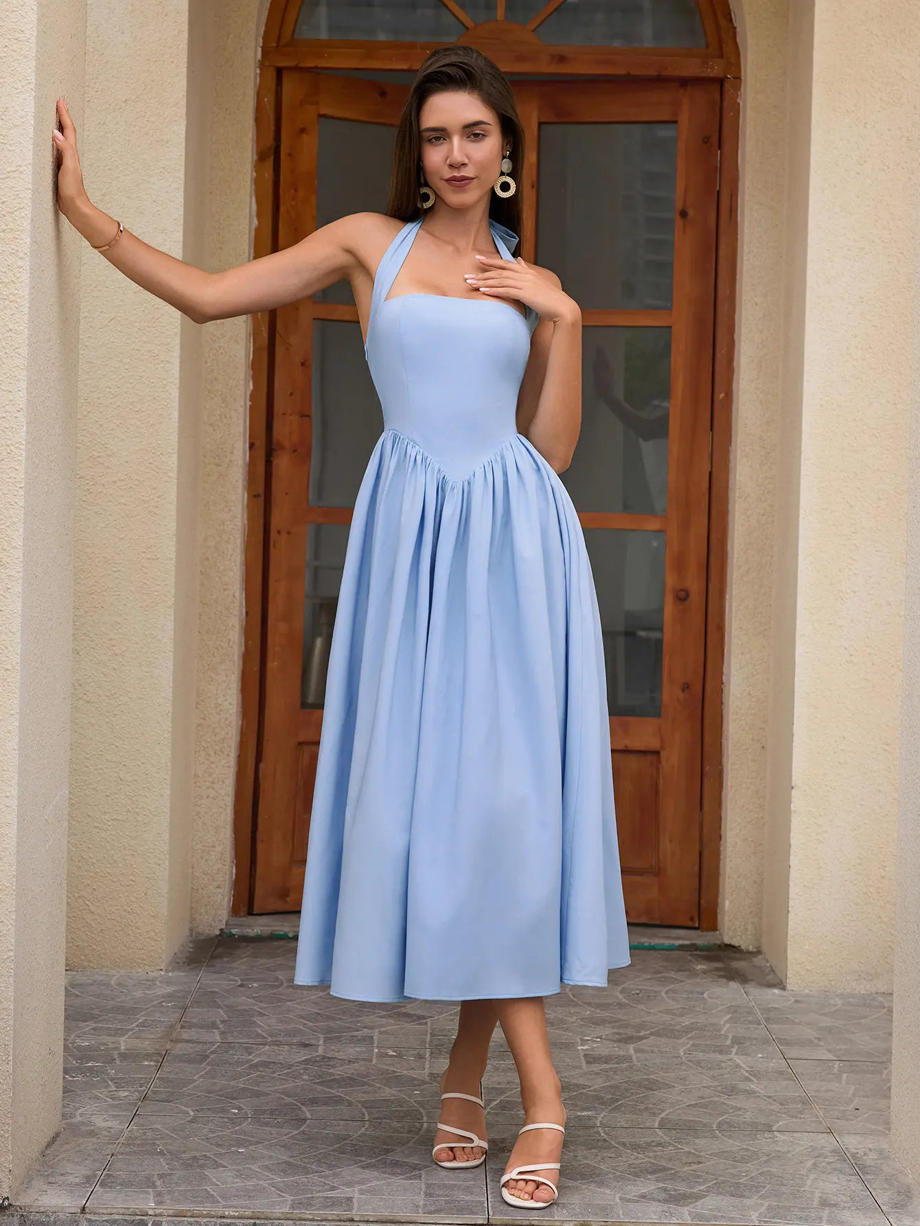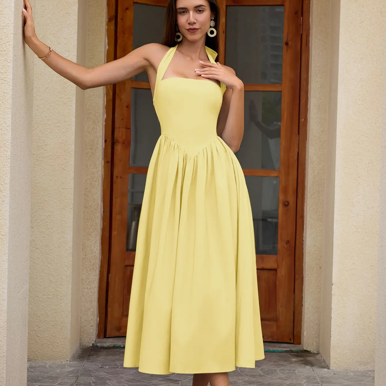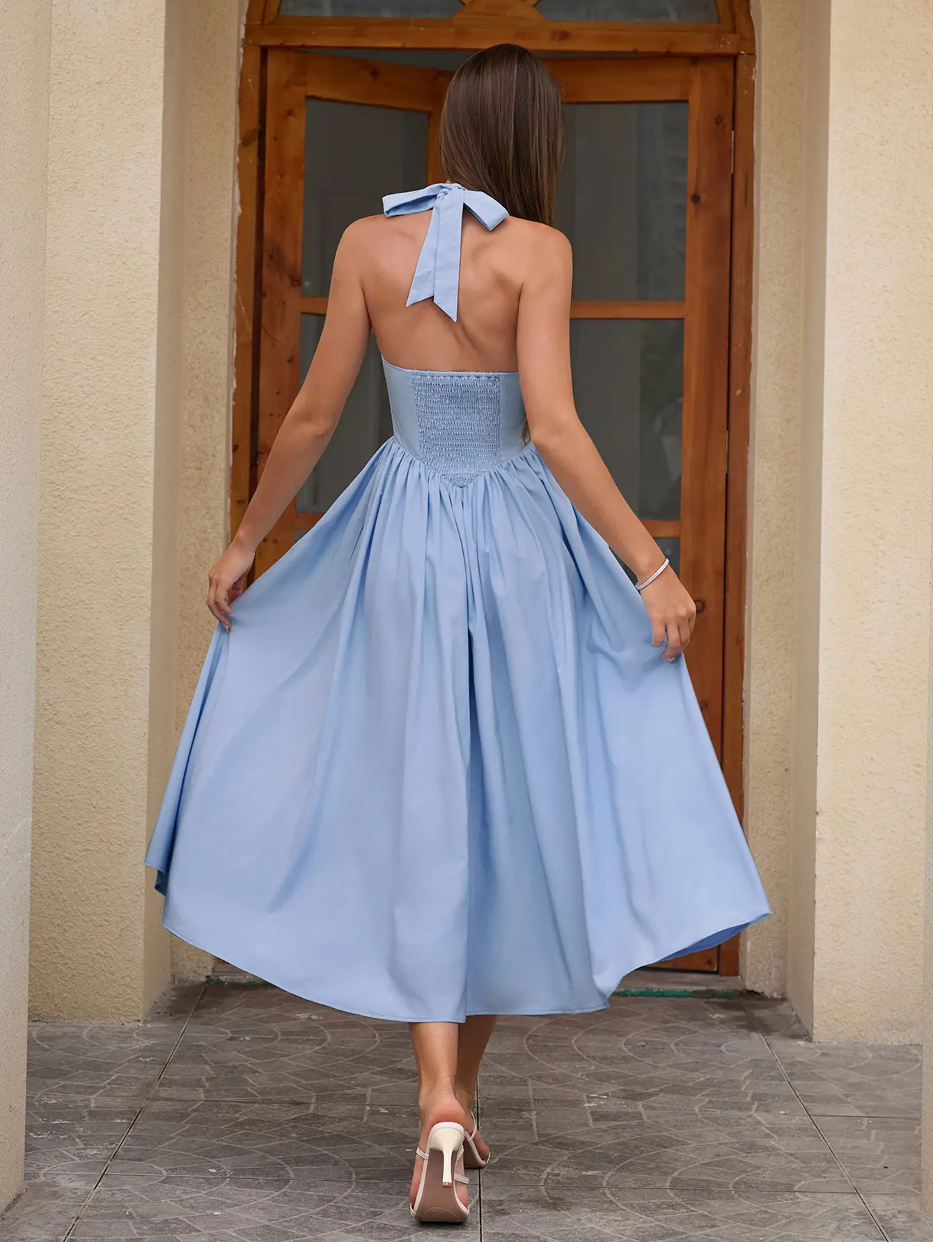 Halter Backless Smocking Tie A-line Dress, Elegant and Fashionable Party Date Dress