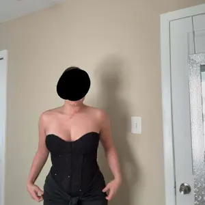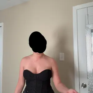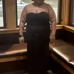 She is beautiful, however! Wear the right kind of shapewear under this cause the long skirt part picks up EVERY line it sees lol I wasn’t prepared for that cause I kept trying her on without the shapewear on 😂. The fabric that the clear strap slides into is also the kind of fabric that will rip lol