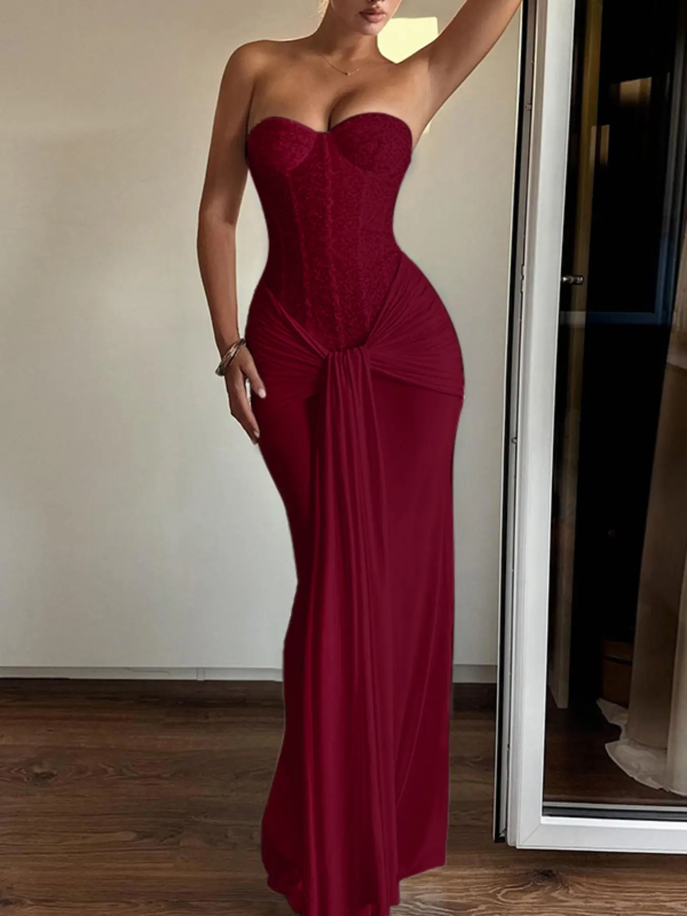 【Charming silhouette】: The strapless design highlights shoulders while the flowing fabric accentuates a graceful profile.