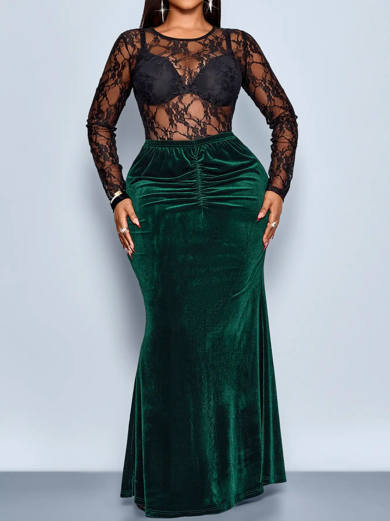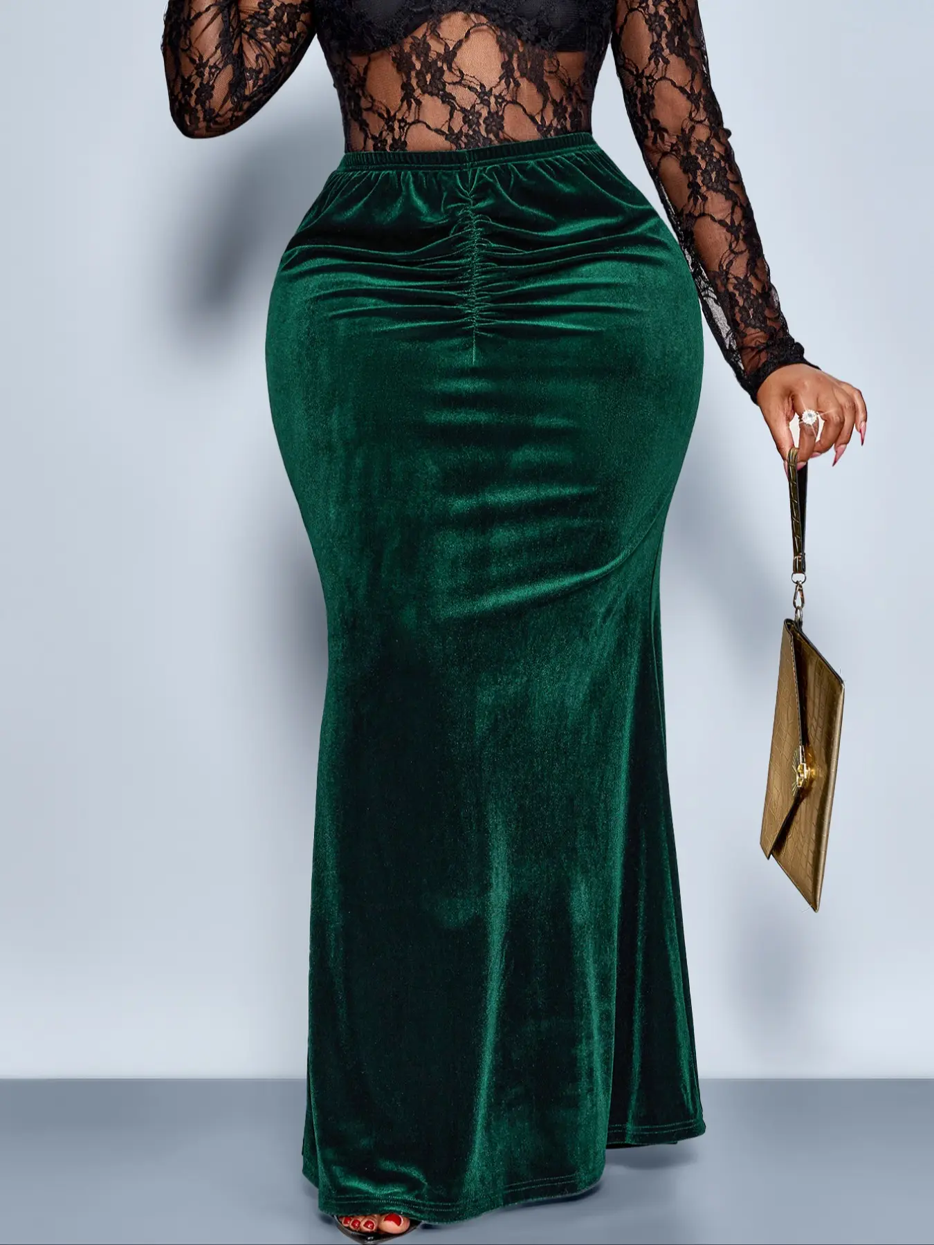 This skirt was made to hug your curves effortlessly ✨ Crafted from soft, high-stretch velvet, this ruched maxi skirt smooths, shapes, and moves with your body for a flattering, comfortable fit. The gathered detail enhances your silhouette while the floor-length design adds elegance and drama. Perfect for date nights, Valentine’s dinners, parties, or dressed up with a lace or fitted top for a luxe evening look. Comfortable, stretchy, and undeniably chic—this skirt is a must-have for confident, curve-loving style 💚 #chic #womens#valentines #curvy @misJackiee @God Show Me Mercy 🇯🇲 @Sylvia MzMoney Johnson @Slay kapri @dancing machine @Sharatar078