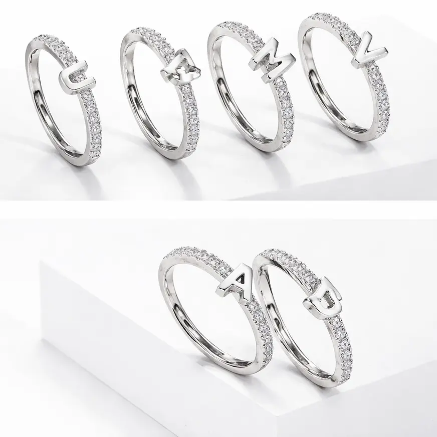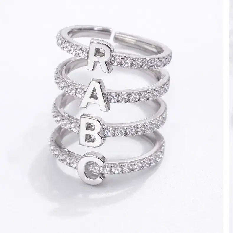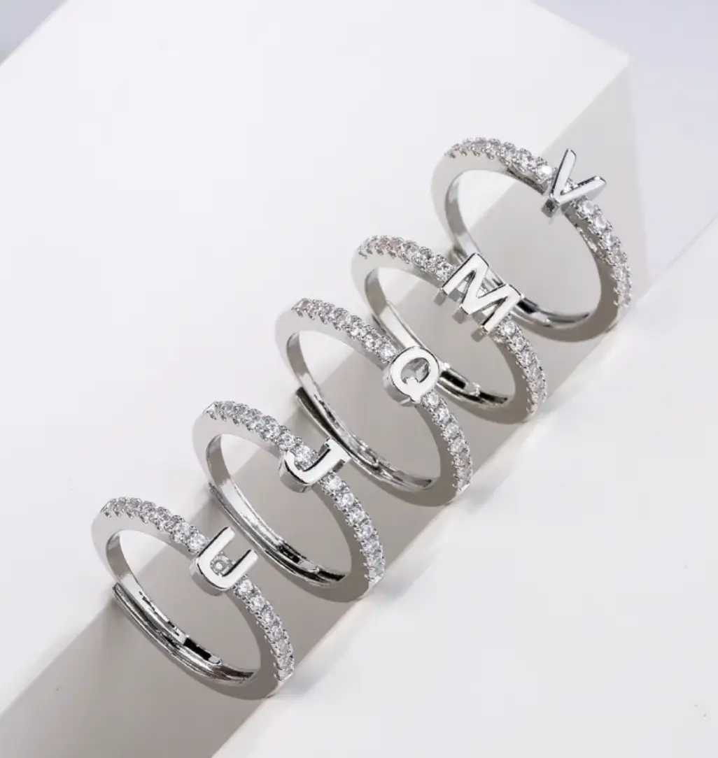 Icy Silver Initial Adjustable Ring - Copper Material with Elegant Design for Versatile Wear Customizable Fit Durable