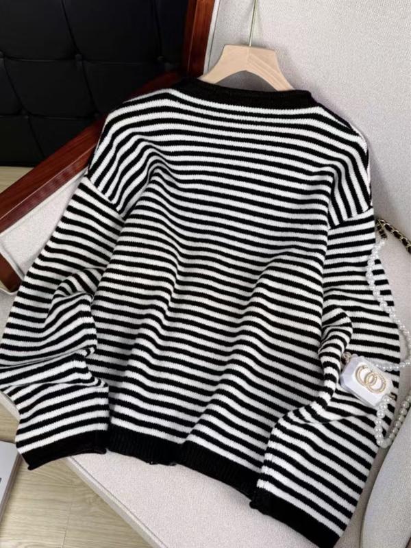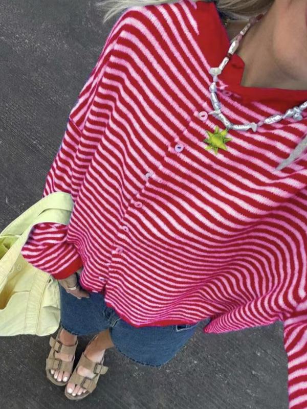 5. Elegant Knitted Cardigan for Fall & Winter, Unique Design Colorblock Striped Sweater, Long Sleeve Casual Fashion Knitwear