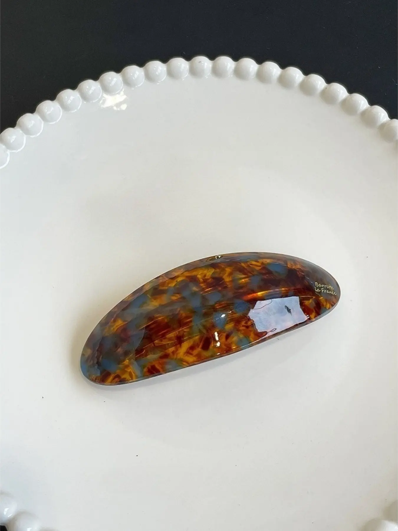 brand logo is much bigger than it appears in the photo and once in the hair it looks as if the clip has something on it, unless you get close enough to realize it’s the branding. It also has scuffs in multiple places which I don’t understand bc the packaging was good