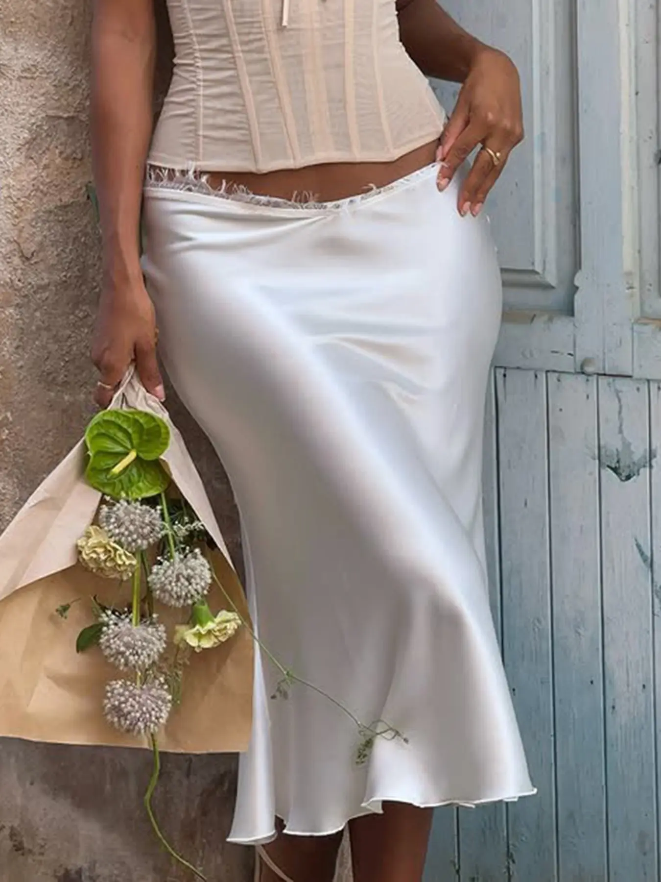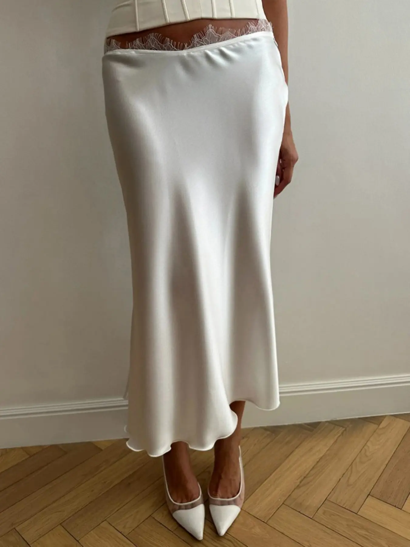 5. Elegant Lace Patchwork Bodycon Skirt for Women, Womenswear Street Style Satin Low Waist Mermaid Midi Skirt, Retro Plaid Commuter Wear