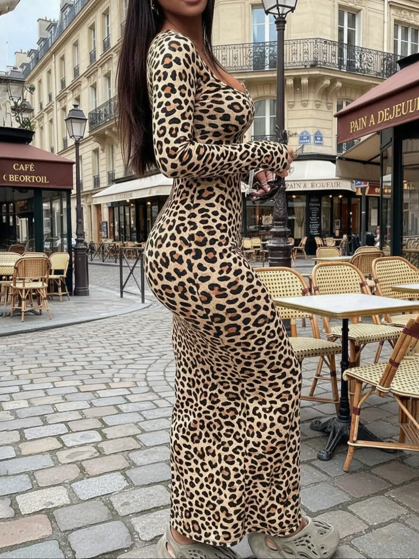 Elegant Leopard Print Dress, Bodycon Side Slit, Fitted Design, Perfect for Casual & Party Wear, High-Quality Fabric, Stylish Women's Clothing