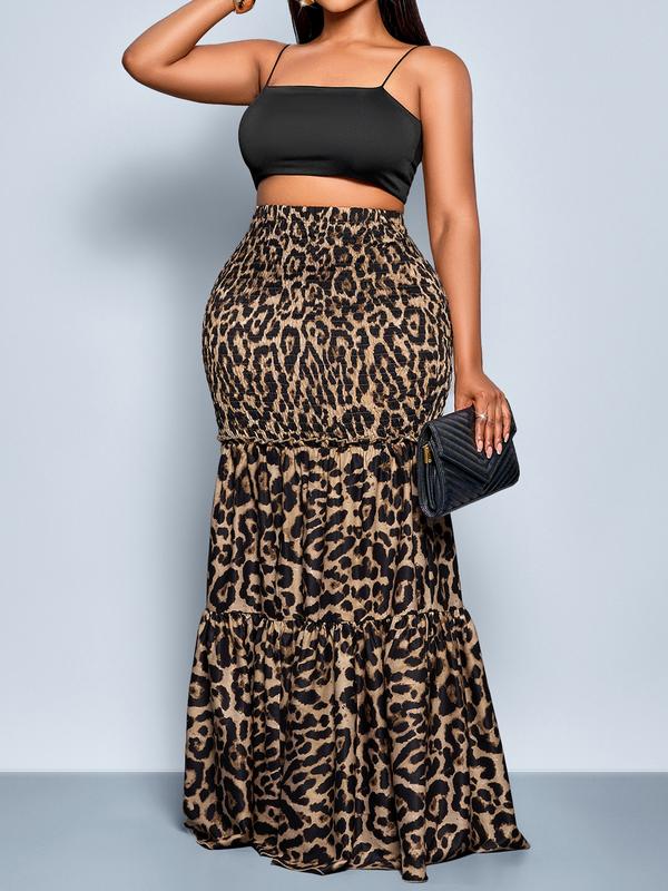 Elegant Leopard Print High Waist Long Skirt, Plus Size Women's Fall Fashion, Fitted Woven Fabric, Modest Style, Comfortable & Stylish #plussizesweatsuit #plussizesweaters #plussizesweats #plussizeleggings #plussizeholidayoutfits #plussizeoveralls #plussizeprom #plussizeholidayoutfit #ootdplussize #plussizebirthdayoutfitideas