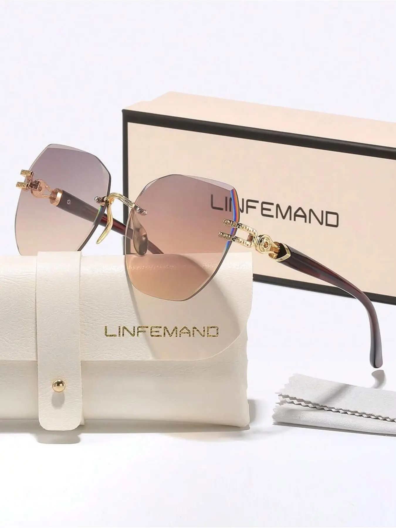 Elegant Lightweight Rimless Sunglasses, Trendy Casual Geometric Frame Sunglasses 🤎✨