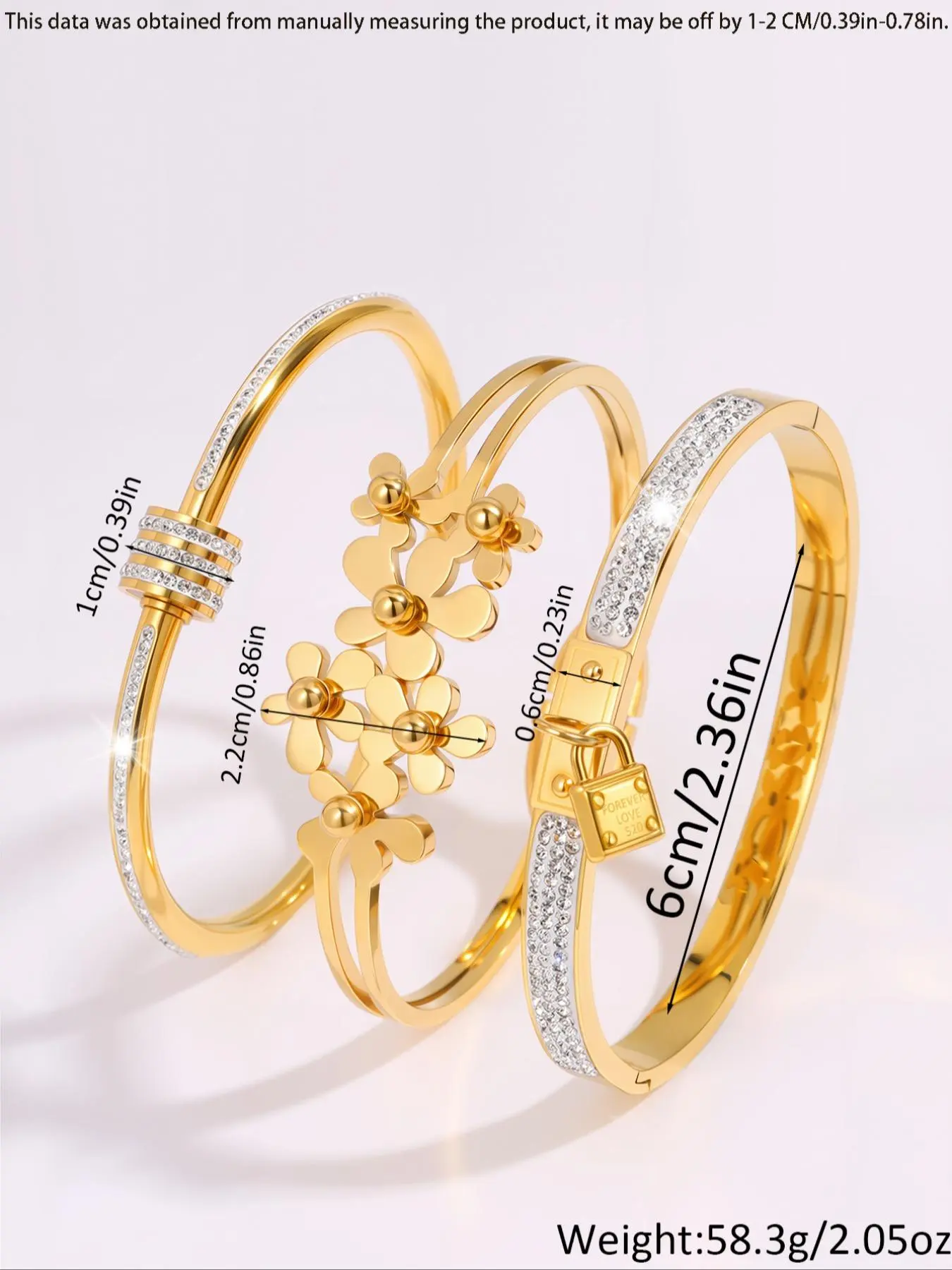 Elegant Luxury Bracelet Set, Stainless Steel Jewelry for Women & Men, Trendy All-match & Exquisite Jewelry for Birthday Gift