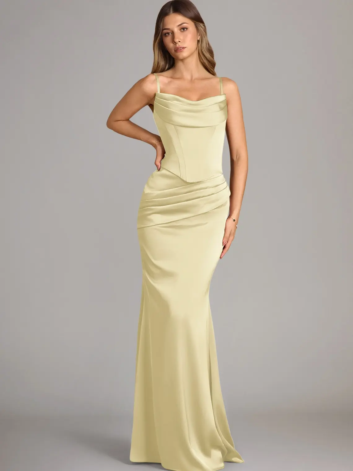 5. Azazie Sorrel Mermaid Strapless Cowl Corset Convertible Wedding Evening Satin Dress SpringStatements