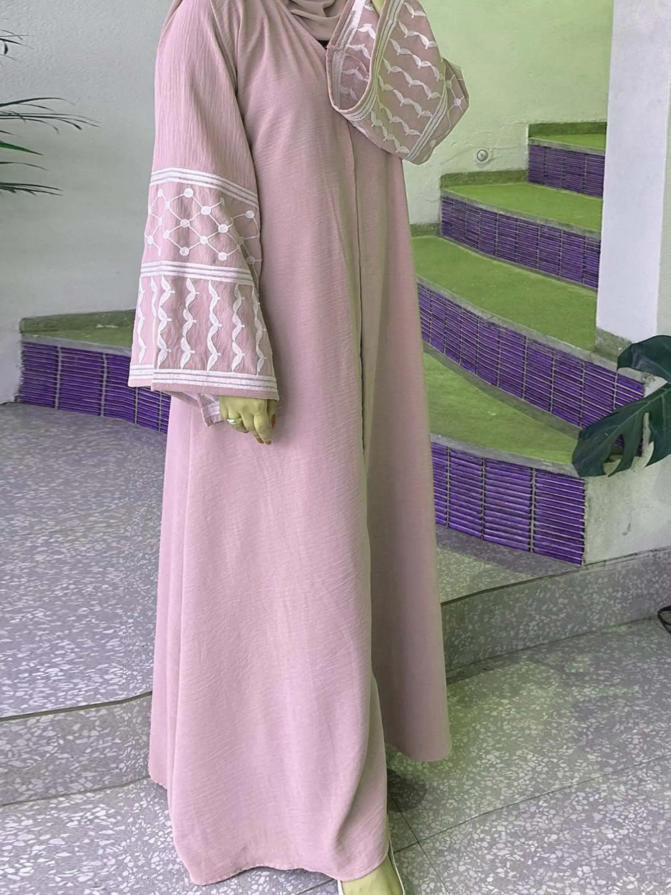 【Loose Fit】: Crafted with a loose-fitting structure, this abaya ensures ease of movement, making it ideal for day-long wear.