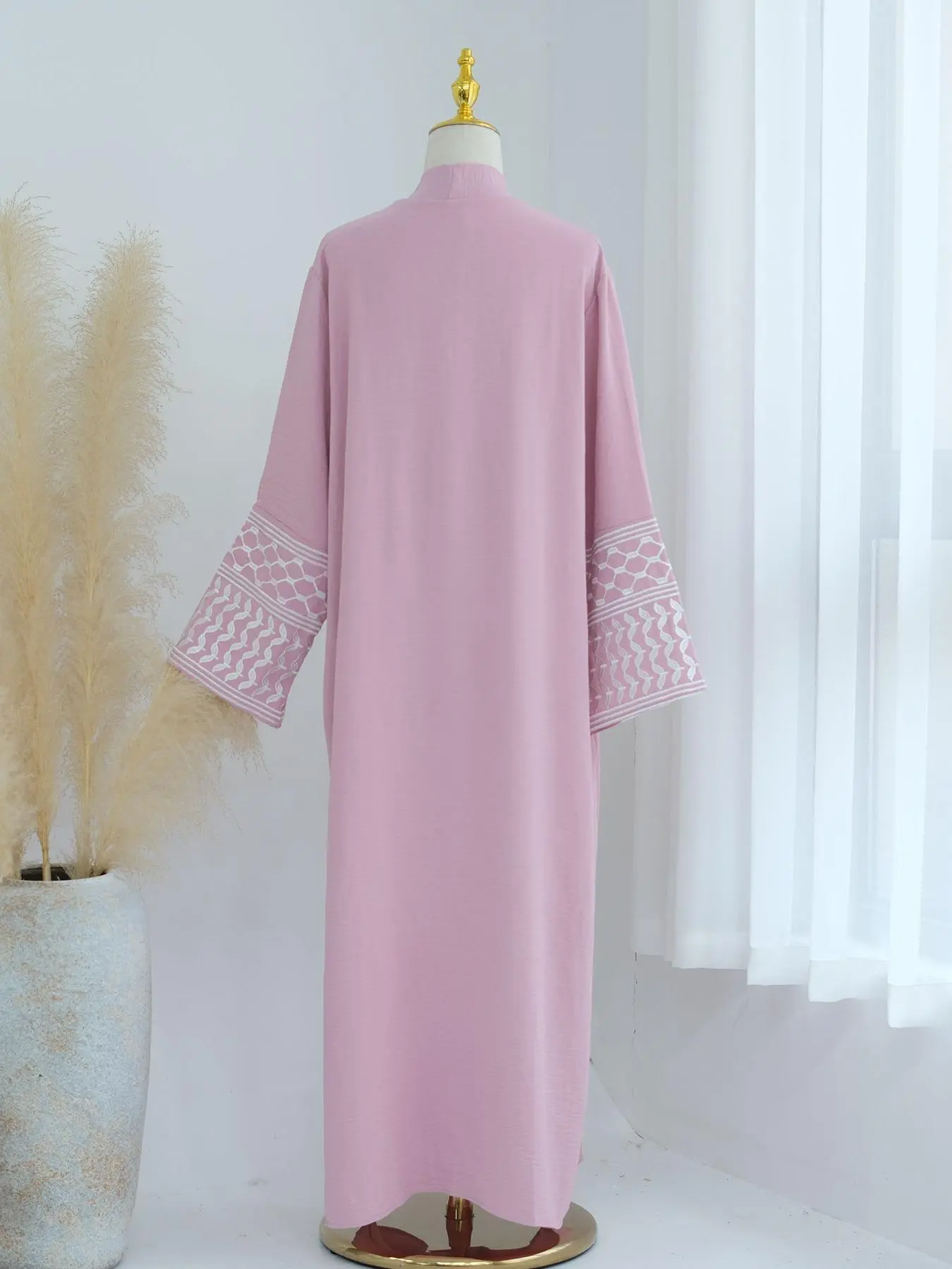 Muslim open abaya clothing Elegant Women's Ramadan Solid Color Embroidered Cardigan Abaya Dress, Modest Loose-Fitting Robe with Belt and Pockets for All Seasons, Modesty Abaya, Belted Abaya
