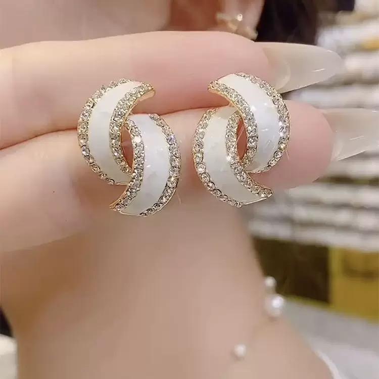 5. S925 Silver Needle Fashion Geometric Double C Shell Oil Drop Stud Earrings, Simple Versatile Elegant Jewelry DZEH1080