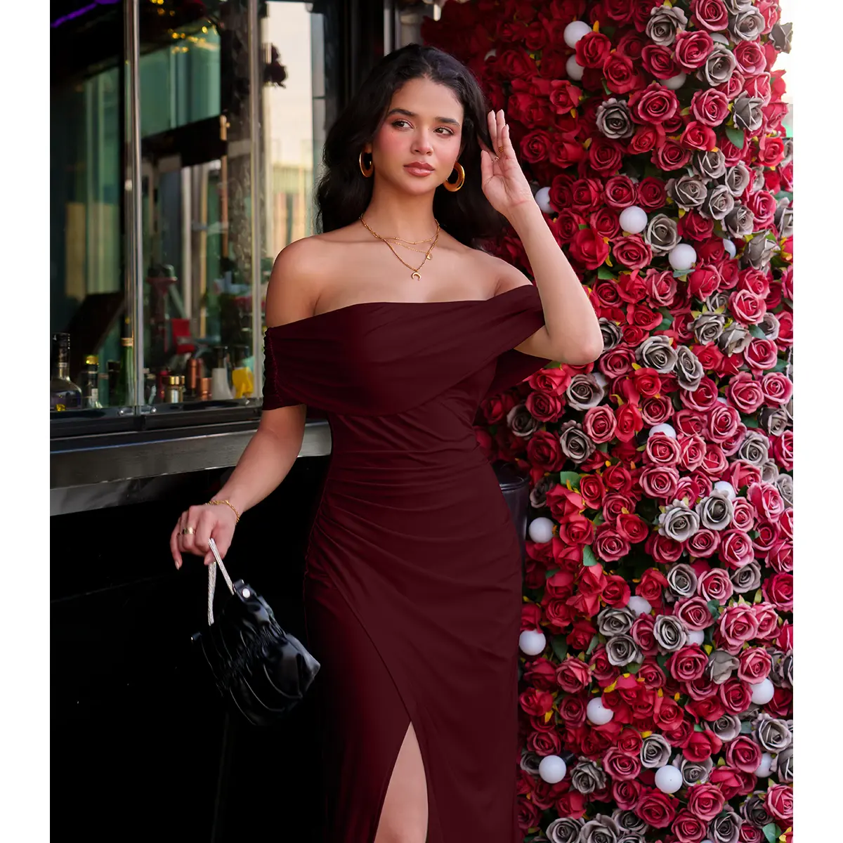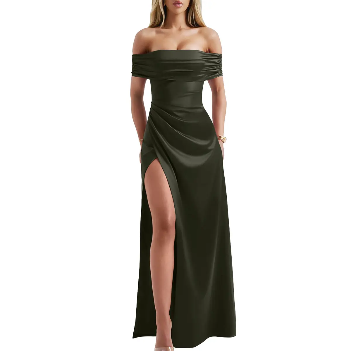 I loveeeeee this dress, I just wore it to my friends’ wedding and got a ton of compliments! Very comfortable fabric, the slit can be made more visible or less visible. I rolled the middle piece down and pinned it for a different look as you can see bc it fit tight around my chest (I’m a 34DDD and got a medium) So I would size up if you want to wear it as is and have a bigger chest. But everywhere else fit great!