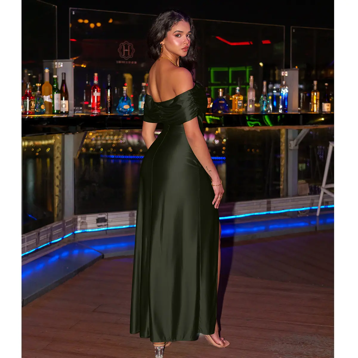 This dress is stunning and feels so good on. Looks like satin, but is stretchy. Very flattering. True to size and color. I tried XL & L, and prefer the XL because I have broad shoulders & arms. I’m 5'8" and 185. Both fit, XL was more comfy. It's hand wash, line dry too! It's perfect! Try it!