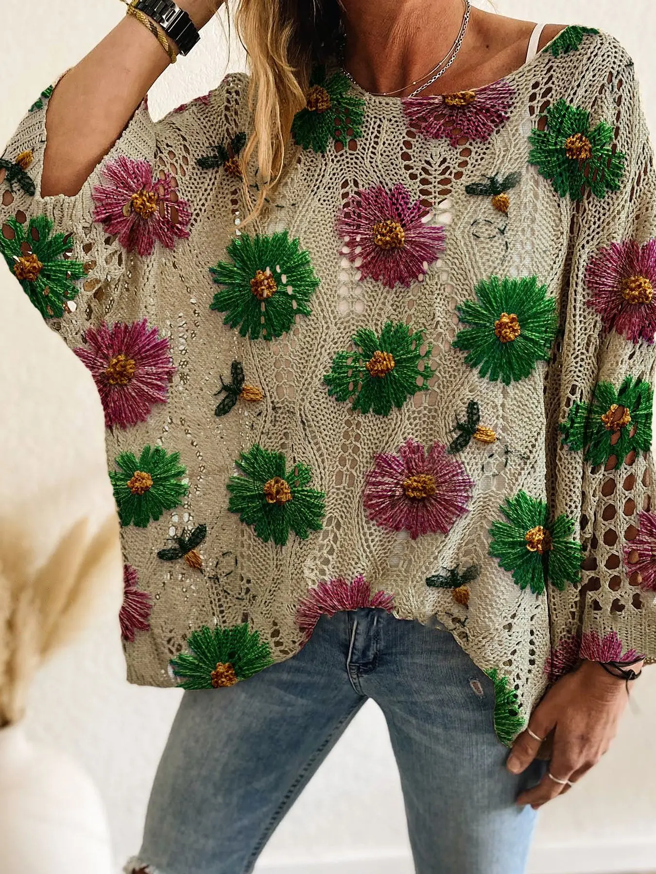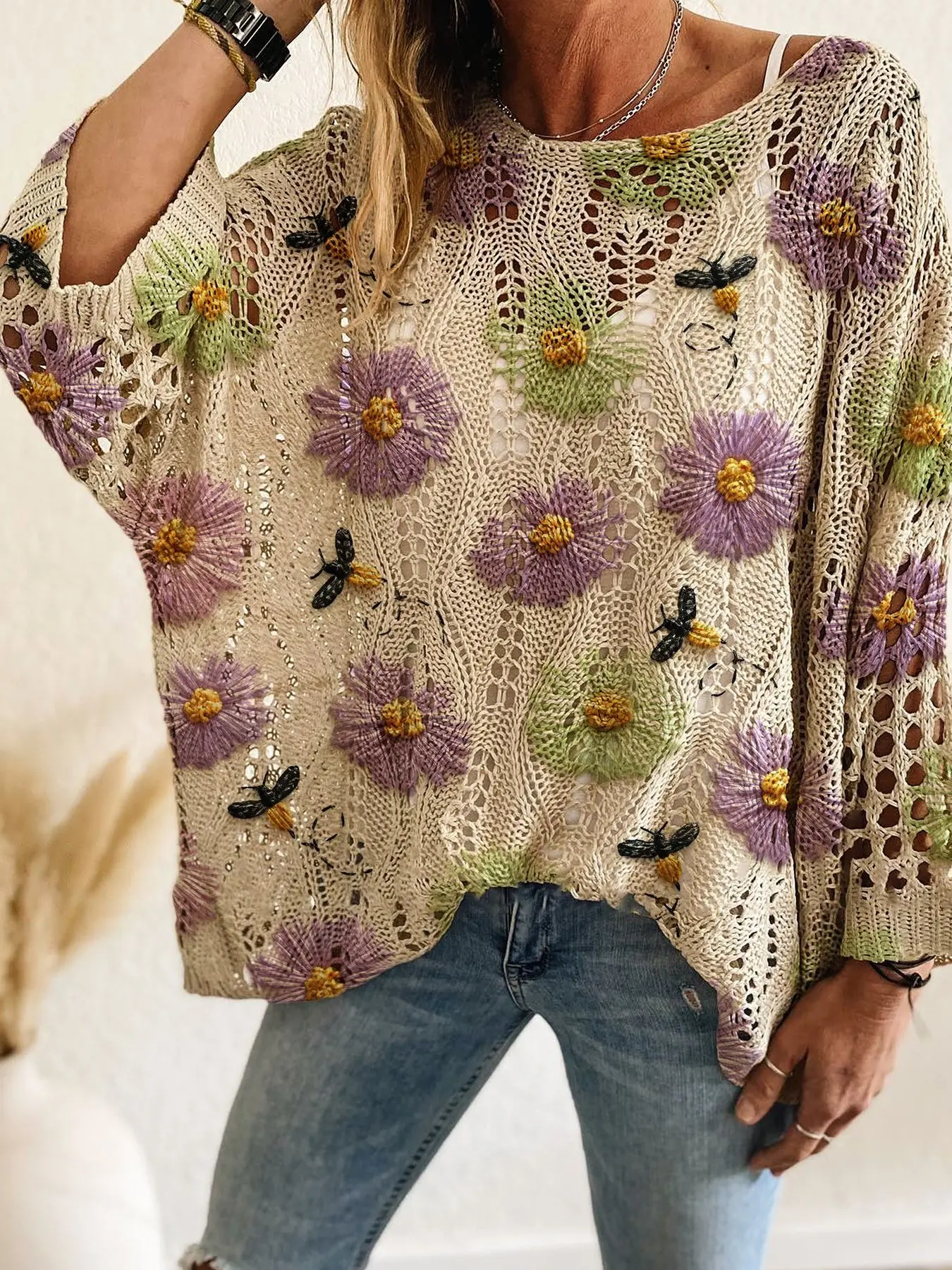 Love this sweater top! So cute with the flowers and butterflies. Perfect for spring and summer. Cute with jeans or shorts